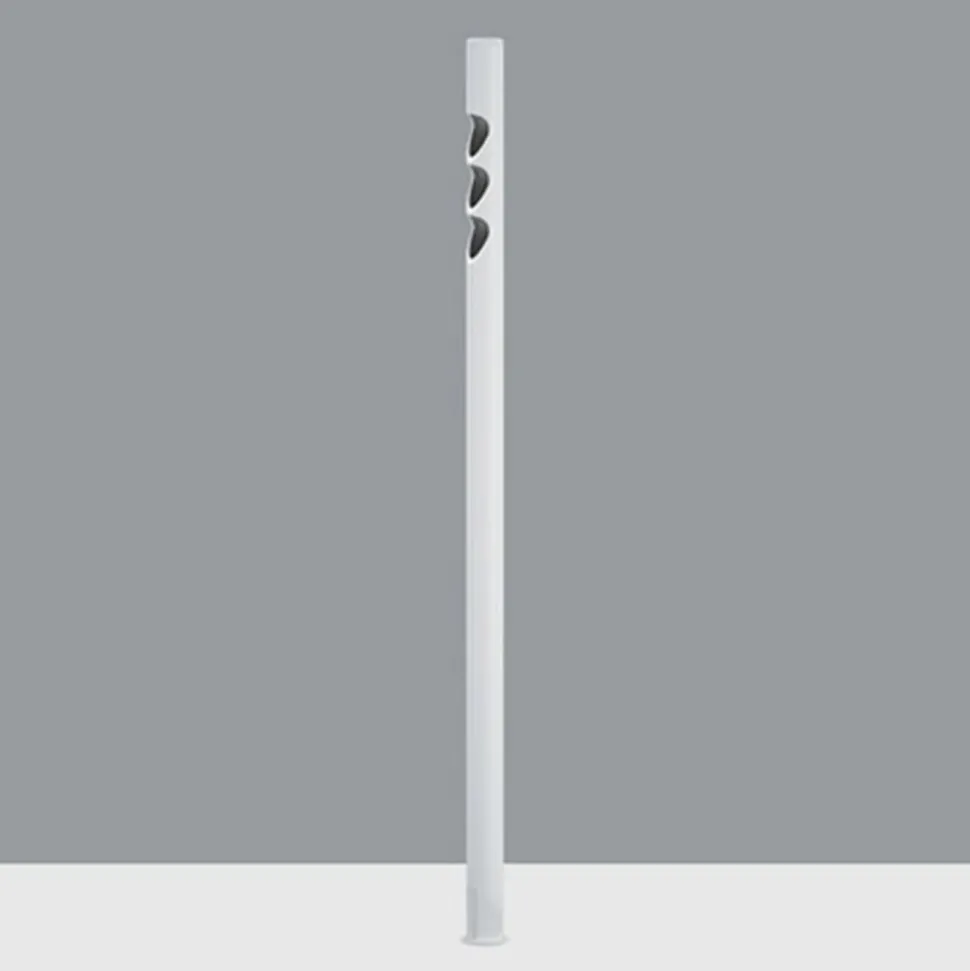 Minimalistisk Lucy LED-skrivebordsarmatur fra ERCO – kan skrues fast i bordpladen En pulverlakeret rørformet aluminiumsprofil udgør kroppen på Lucy LED-skrivebordsarmaturet. LED’erne er integreret i den øverste del, og deres lys udsendes skråt nedad gennem tre åbninger, der er rettet mod den ene side og oplyser bordet eller arbejdsfladen. Lyset kan drejes 180° efter behov. En trykknap med lysdæmperfunktion er placeret direkte på lampen. Til montering kræves der en åbning på Ø 3,5 cm i bordpladen, som aluminiumsprofilens nederste ende skrues fast i med den medfølgende låsemøtrik. Strømforsyningen sker via det medfølgende kabel med plug-in-strømforsyningsenhed – med monteringsbøsning af pulverlakeret messing til bordpladetykkelser fra 1 til 4 cm – reflektor: plast, aluminiumsbelagt, blank sølv – udstyret med blød linse – afblændingselement: plast, sort – tilsluttet belastning: 13 W