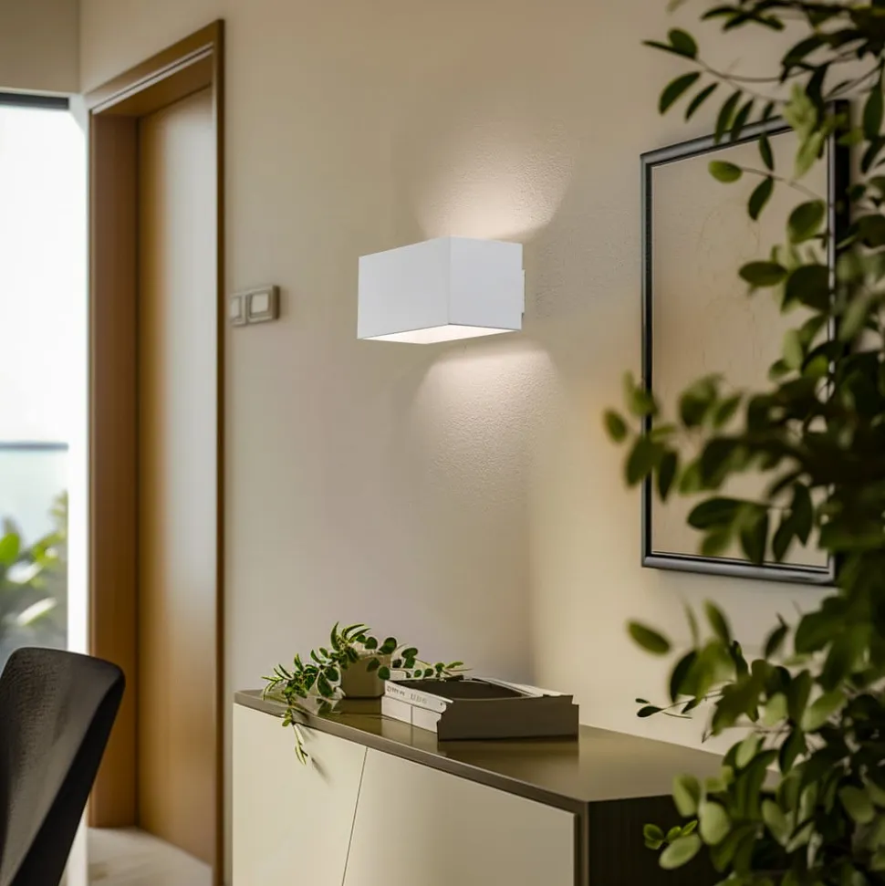 Euluna Elestren væglampe imponerer med sit minimalistiske design og den høje kvalitet i stål. Den hvide, matte overflade giver ethvert rum en tidløs elegance og passer perfekt ind i forskellige indretningsstilarter. Denne lampe er særligt velegnet til entreen og stuen, hvor den skaber en behagelig atmosfære og sætter stilfulde accenter.