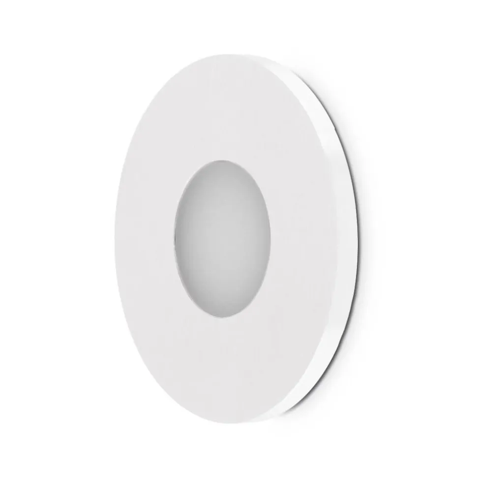 Rund LED-vægindbygningslampe LR230 – direkte lys til orientering LED-vægindbygningslampen LR230 er både visuelt og funktionelt ultramoderne. Uanset om det er i gangen i et hjem eller i korridoren på et hotel eller i en virksomhedsbygning, giver det moderne indbyggede armatur diskret og nyttig orienteringsbelysning. LR230 kan monteres direkte på væggen med to skruer bag den magnetiske afdækning i rustfrit stål. Det indbyggede lys kan også installeres på en afbryderboks. Beskyttelsesklasse IP44 opnås takket være en indbygget tætning på bagsiden. LED’erne er placeret bag et opalt plastdæksel – Symmetrisk, direkte og diffust lysudslip – Mulighed for gennemfortrådning – Direkte tilslutning til 230 V – Kan også bruges i møbelbyggeri