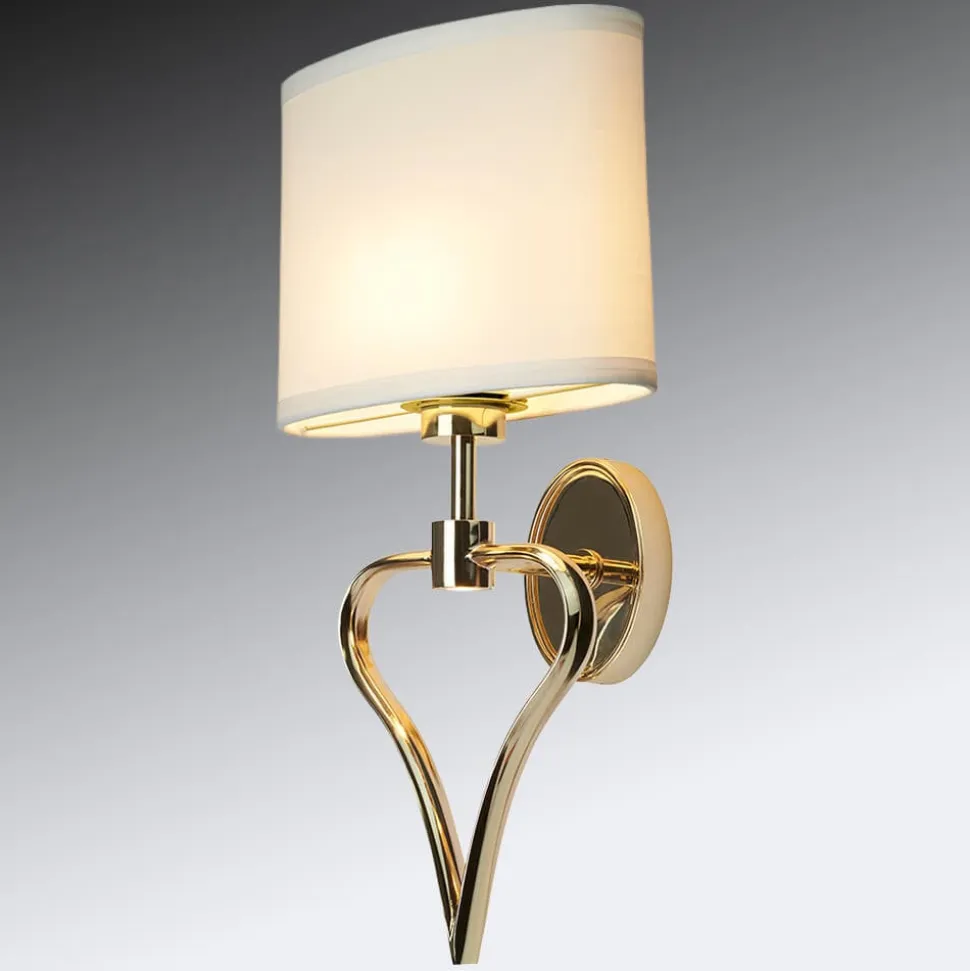 Falmouth LED væglampe – stel guldfarvet, stofskærm i hvid