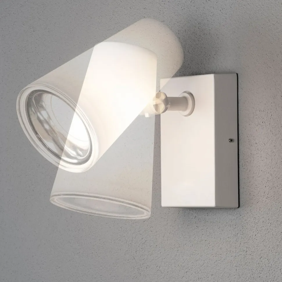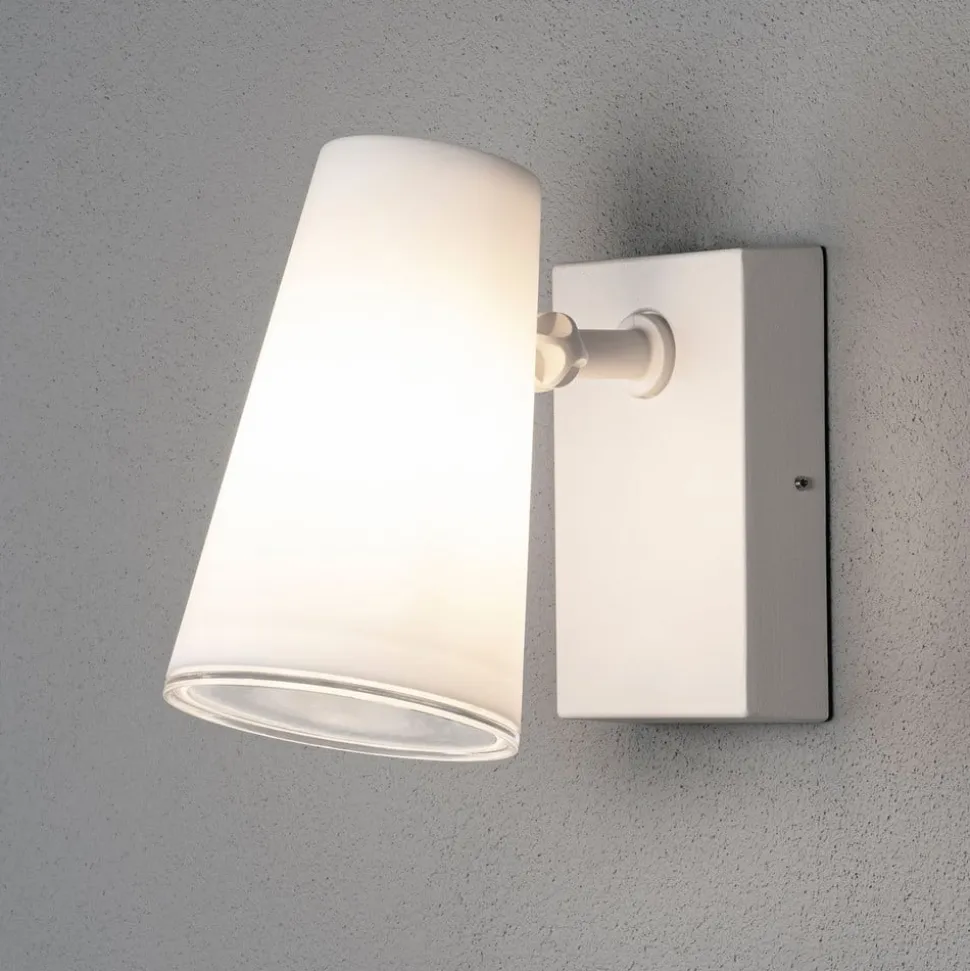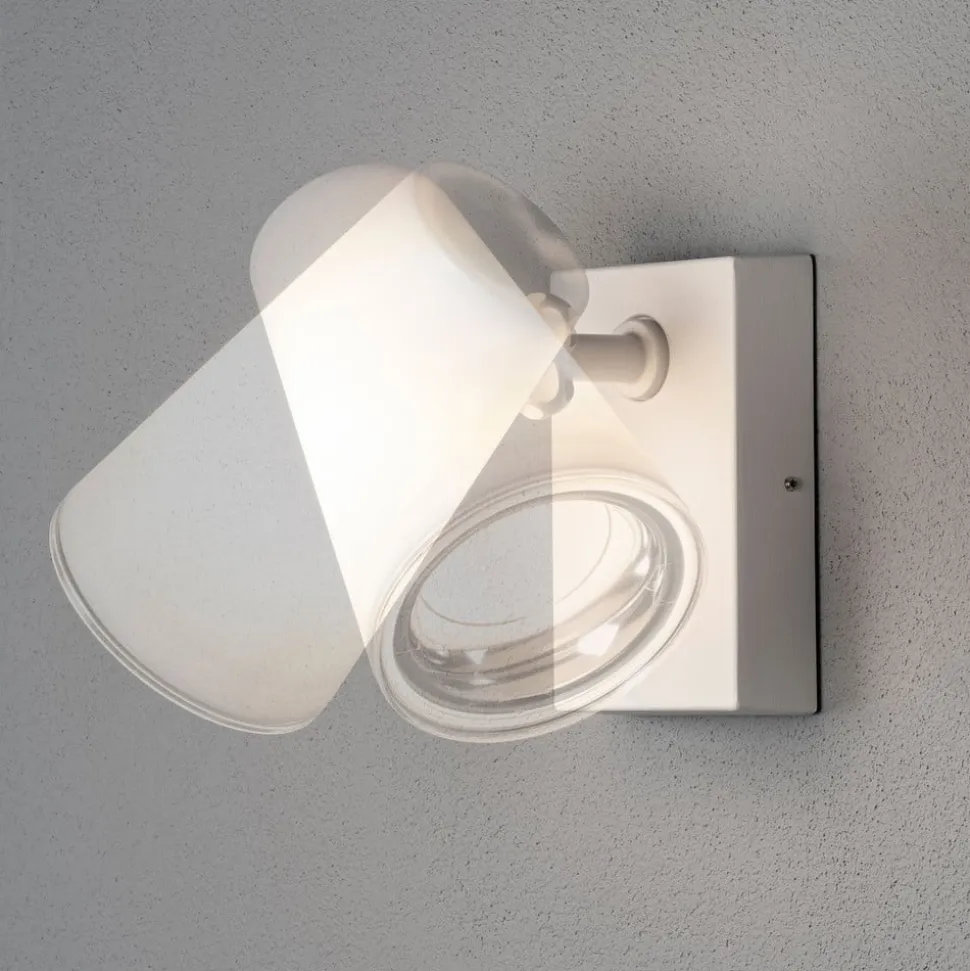 Udendørsvæglampen Fano er designet i skandinavisk stil og har en elegant lampeskærm i opalfarvet akryl. Den lettere mælkefarvede skærm og det hvidlakerede aluminium på vægholderen gør den udendørs spotlight til et moderigtigt tilbehør såvel som en nyttig lyskilde, for eksempel på terrassen. Skærmen på Fano-spotlightet kan også drejes sidelæns og vippes 90°, så lyset kan justeres individuelt.