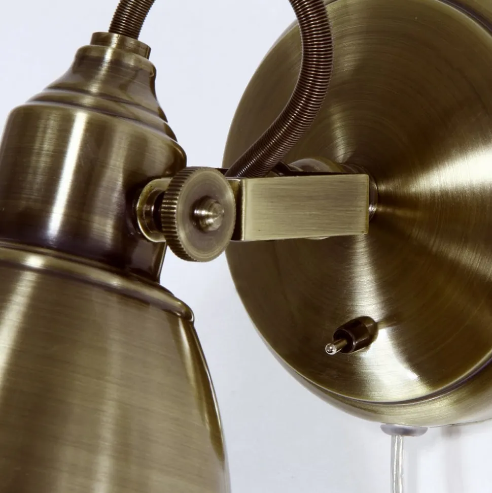Flot FJÄLLBACKA væglampe med justerbart spotlight Det justerbare spotlight gør Fjällbacka væglampen ekstremt alsidig – uanset om det er som læselampe ved siden af sengen eller som accentbelysning i stuen. Det tiltalende antikke design skaber en hyggelig stemning. Lampen har en praktisk afbryder og leveres med et 1,5 m langt forsyningskabel og et eurostik.