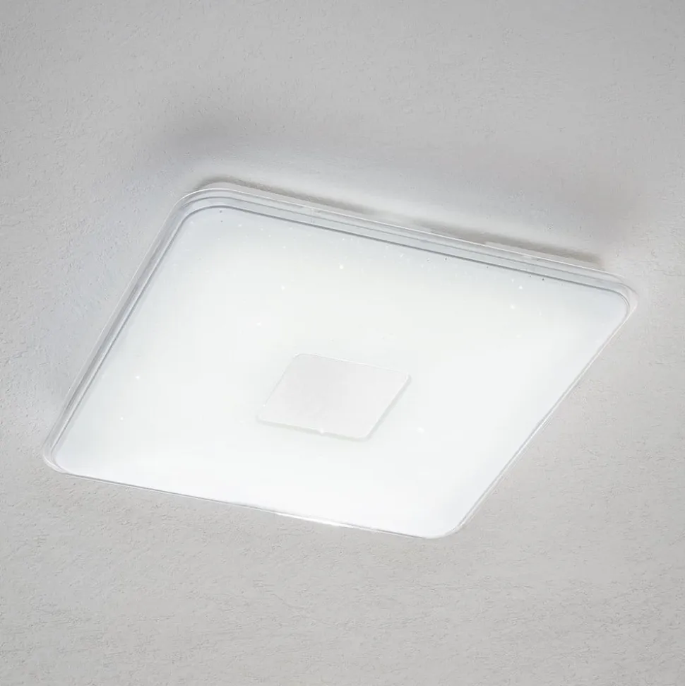 LED loftslampen Samurai holder enkelte funktioner klar, som gør livet dejligere i brugerens hjem. Den medfølgende fjernbetjening gør det muligt at styre alle funktioner efter behov. Således kan man regulere lysstyrken med den eller også vælge lysfarve blandt varmhvid, universalhvid og dagslys. Det giver en lang række forskellige atmosfærer og gør lampen alsidigt anvendelig. Desuden har den en natlampefunktion. Om natten funkler den fiktive stjernehimmel i loftet og indbyder til at drømme. Loftslampens udseende er præget af en kvadratisk form med afrundede hjørner og fuldendes af et lille kvadrat i midten af lampens plastskærm. Samurais funktioner er lige så omfattende som anvendelsesmulighederne.