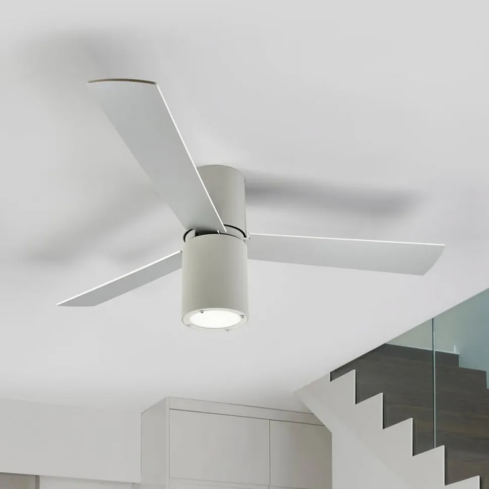 Loftventilatoren Formentera i et tidløst og progressivt design er en allroundtalent inden for sit område. De monterede rotorblade kan placeres på enten den hvide eller den grå side.