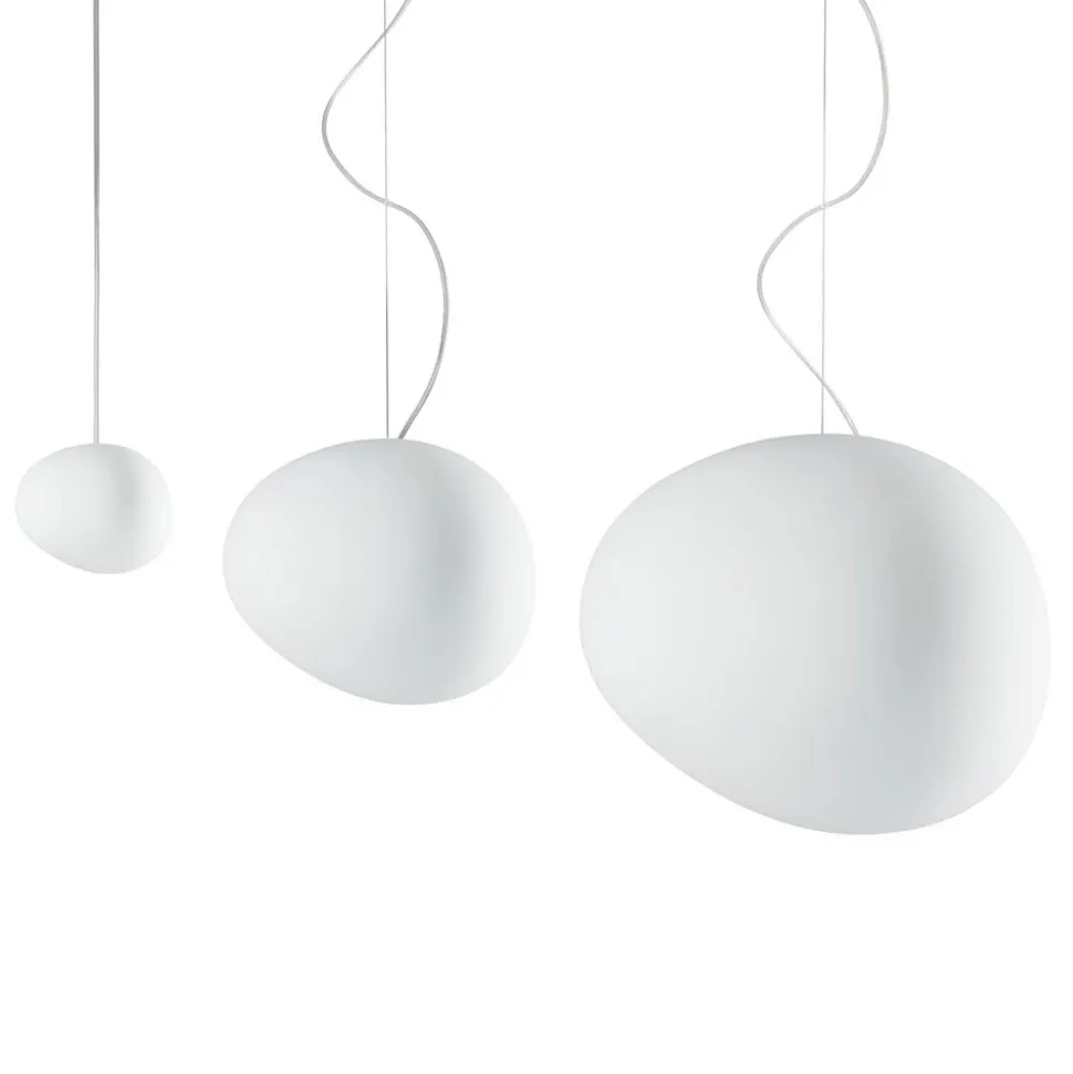 Hængelampen Gregg piccola fra Foscarini minder om en lille sten, der er blevet glat og rundslibet af flodens strøm. Den mundblæste glasdiffusor til lampen er fremstillet ved hjælp af syre-dypningsmetoden – i den kvalitet og præcision, som man er vant til fra det italienske designmærke Foscarini. Den organiske, asymmetriske form får hængelampen til at se forskellig ud afhængigt af betragterens vinkel – spændende og alligevel altid harmonisk.