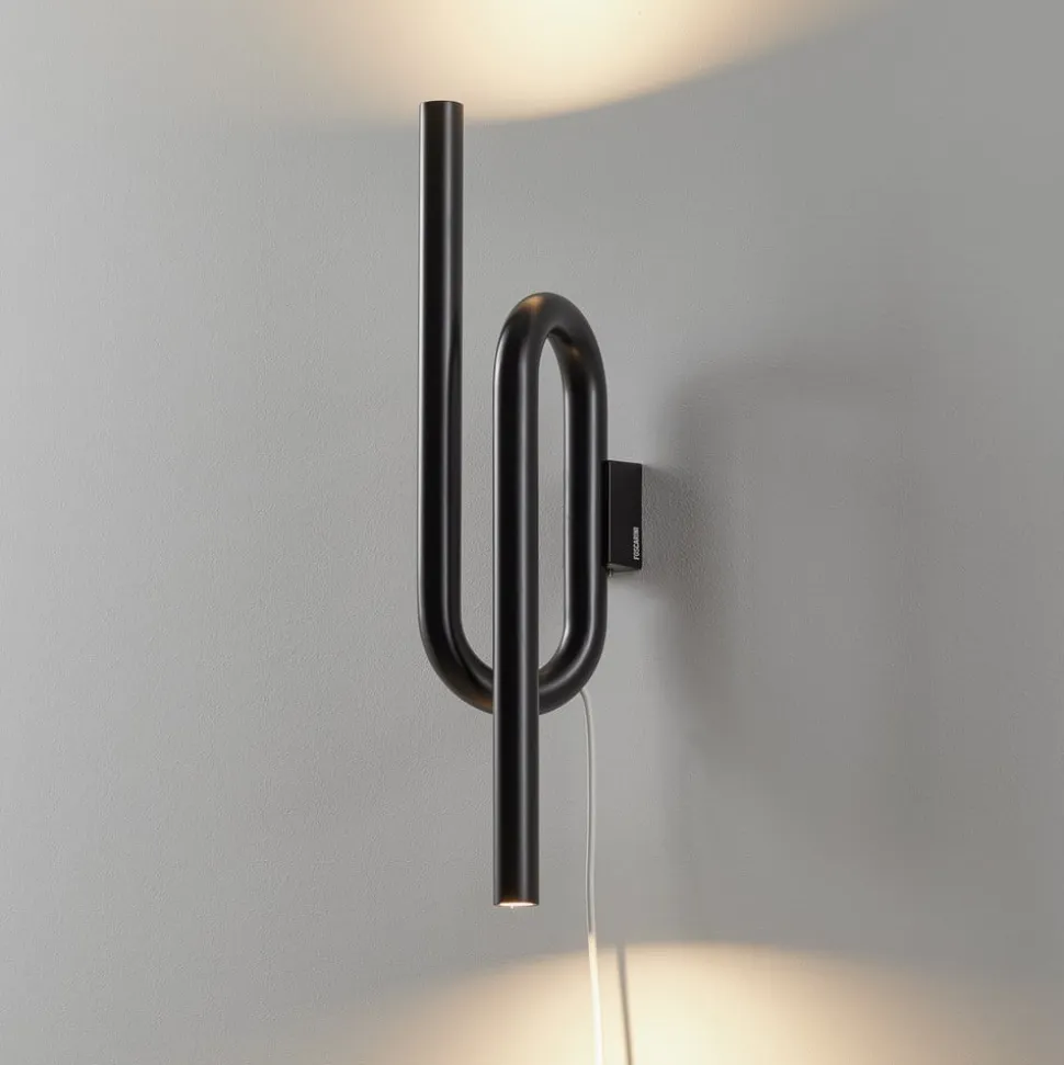 Tobia LED designervæglampe med stik Tobia LED væglampen af designer og arkitekt Ferruccio Laviani, der arbejder som produkt- og modedesigner samt indretningsarkitekt og showroomdesigner, er enkel og elegant. Væglampen, som består af et buet rør, har ikke kun noget at byde på designmæssigt, men også funktionelt: Den udsender lys opad og nedad fra rørets ender og har et forsyningskabel med stik og fodkontakt. Tobia er fremstillet af det anerkendte italienske belysningsfirma Foscarini, som siden 1985 har været synonymt med designerlamper, der opfylder de højeste standarder for design og funktion og er yderst dekorative, både når de er tændt og slukket.