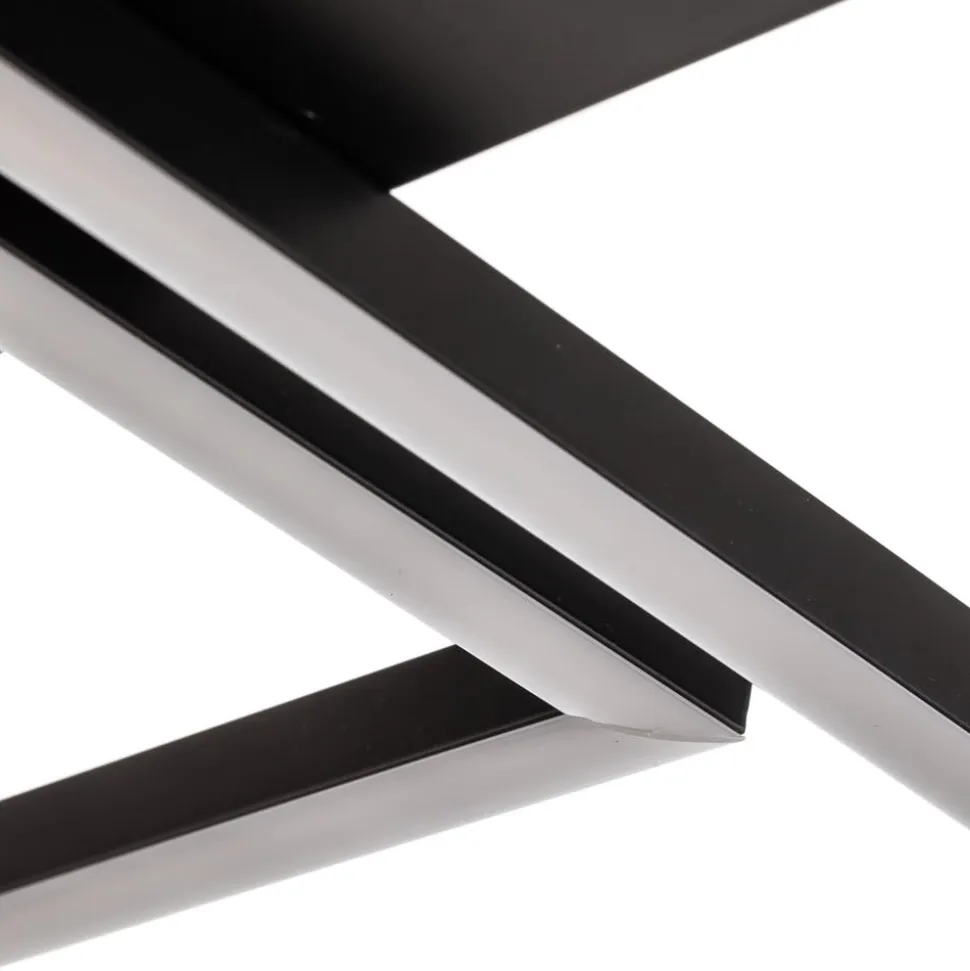 Den moderne LED-loftlampe Frame består af fire firkantede metalelementer – to større og to mindre åbne rammer. På undersiden er de forsynet med satinerede plastdæksler, hvorigennem lyset fra de integrerede LED’er spredes og udsendes nedad.