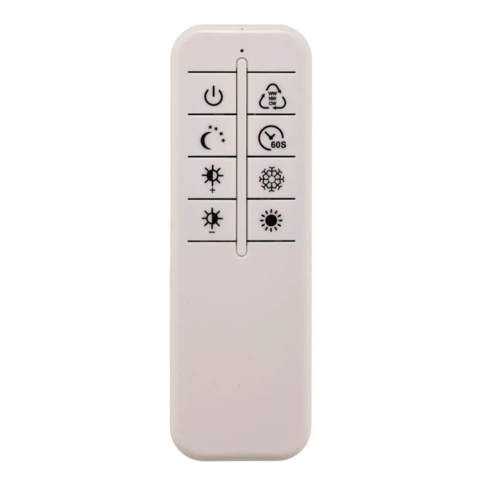 Rammen har mange funktioner, der kan styres med den medfølgende fjernbetjening. Lysfarven kan varieres trinløst mellem varm hvid og universalhvid, og det er også muligt at dæmpe den. På den måde kan lysforholdene tilpasses optimalt til de respektive behov. Desuden kan der aktiveres en timer og en natlysfunktion med fjernbetjeningen.