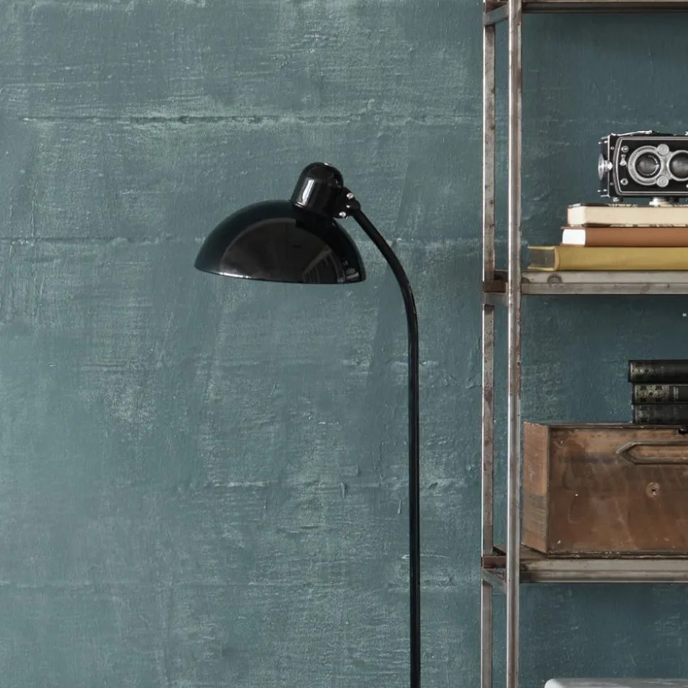 Kaiser idell™ designergulvlampe med blank overflade Denne gulvlampe, designet af Christian Dell, er en typisk repræsentant for den legendariske Bauhaus-stil og kombinerer de klassiske elementer i modernismen – kugle, cylinder og cirkel. Den blev lanceret i 1931, er udstyret med den patenterede drejelige skærm designet til denne lampeserie og passer ind i mange indretningsstile med sit æstetiske udseende. Christian Dell (1893-1974), en tysk sølvsmed og designer, der også arbejdede som håndværksmester i metalværkstedet på Bauhaus Weimar, designede lampeserien Kaiser idell™, sande kultobjekter i Bauhaus-design, en designstil, der nyder uafbrudt popularitet.