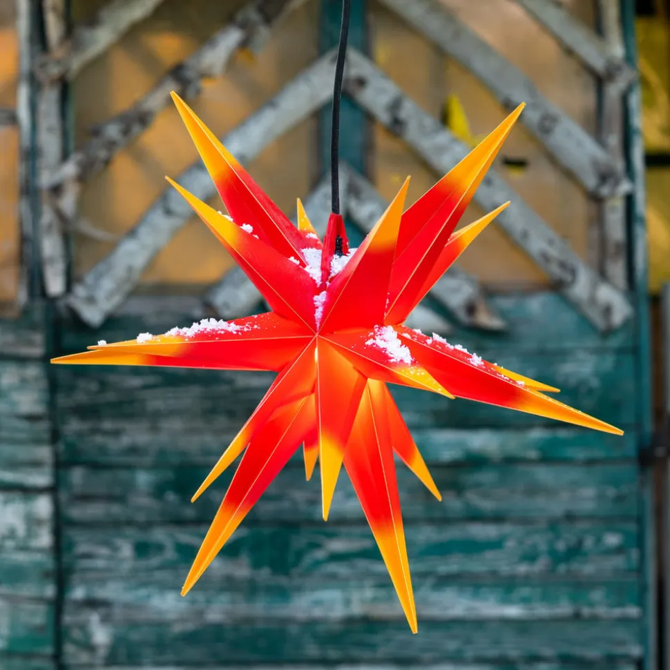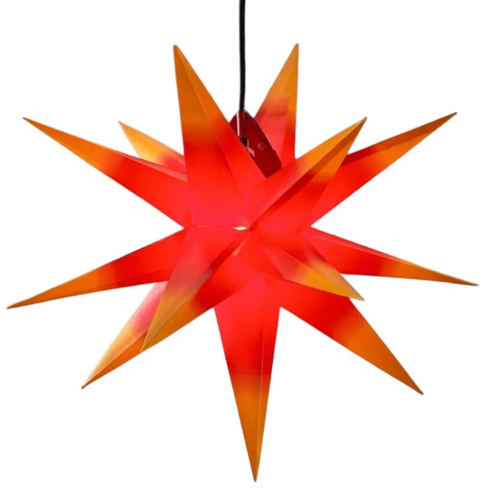 Denne mangepunktsstjerne er fremstillet af vejrbestandigt plast og er med IP44-beskyttelsesgraden også egnet til udendørs brug, da selv kraftigere vejrpåvirkninger som f.eks. vandstænk på alle sider ikke kan skade dens skønhed. Stjernen fascinerer ikke kun på grund af sin størrelse med en diameter på ca. 50 centimeter, men også på grund af sin lysstyrke. Dens enkle skønhed spreder et klart lys, der er synligt på lang afstand i vintermørket og sætter stemningen for julen på en lovende måde