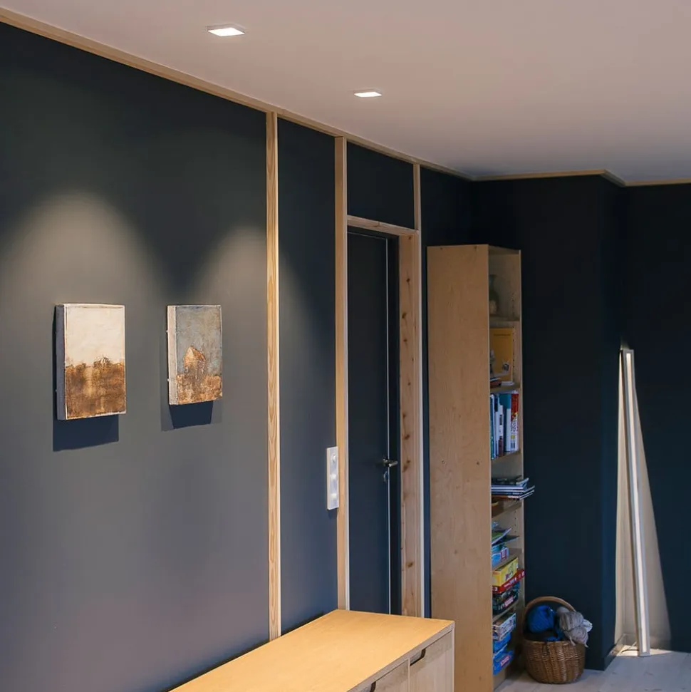 Squary LED indbygningslampe – lyskilde og dekorativt blikfang på samme tid Squary – LED indbygningslampen i skandinavisk design – skiller sig ikke kun ud med sit behagelige varmhvide lys, men er også et blikfang i ethvert rum, uanset om den er tændt eller slukket, takket være dens dekorative udseende. Den runde LED-lyskilde er ikke installeret i midten af det firkantede hus, men en smule forskudt. I Squary er der installeret en kraftig, men energieffektiv LED-chip, og lyset har en udstrålingsvinkel på 24°. Det skaber en attraktiv belysning i bolig- og forretningsområder. Squary er også velegnet til badeværelser og andre fugtige rum med en IP54-beskyttelsesgrad – udstyret med lynkoblinger – kontroludstyr: dæmpbar LED-driver – eksternt dæmpbar – LED-chip: Cree CXB1407