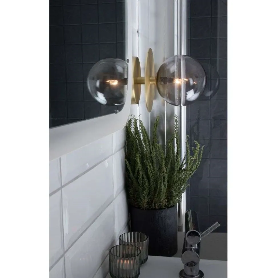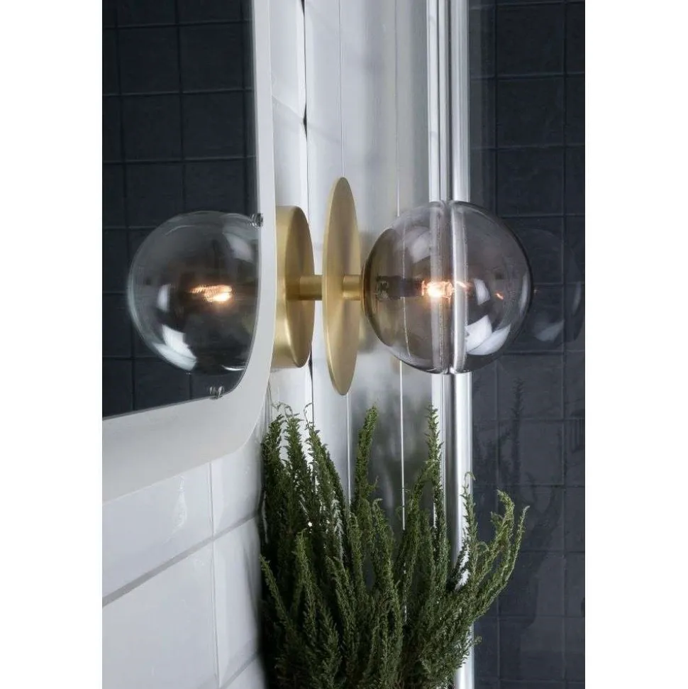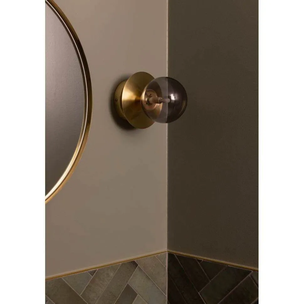 Globen Lighting væglampe ART DECO kombinerer materialer af høj kvalitet som børstet messing og røggråt glas til et harmonisk designobjekt. Kombinationen af metal og glas giver et elegant look, der passer perfekt ind i forskellige indretningsstilarter. Med sin IP44-beskyttelsesklasse er lampen også velegnet til fugtige rum som badeværelser, hvilket gør den meget alsidig.