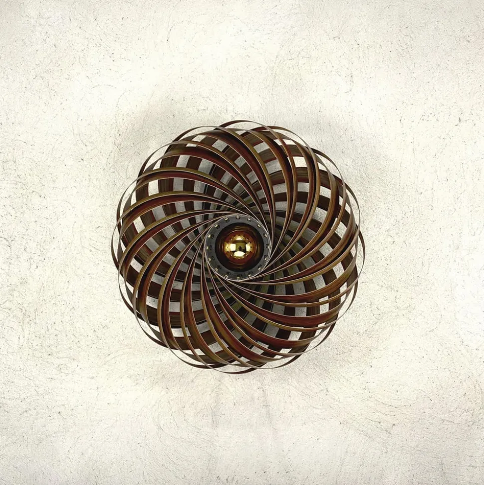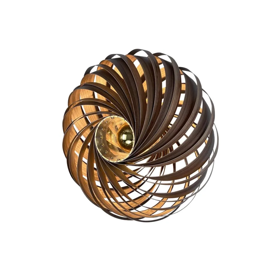 Den bæredygtigt producerede Veneria væglampe er både en lyskilde og et dekorativt indretningstilbehør. Væglampen er lavet af spiralformet træfiner: brede lameller af valnøddetræ er omgivet af smallere strimler af samme træ. Dette skaber et meget æstetisk billede af lys og skygge. Belysningen fra indersiden fremhæver træets træstruktur på en særlig smuk måde. Samtidig udsendes lyset helt blændfrit. En iøjnefaldende lyskilde til belysning af stuer, soveværelser og gangarealer.