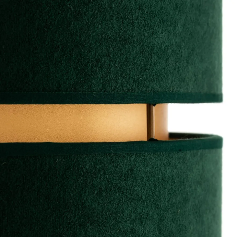 Gulvlampen Duo kombinerer luksuriøse materialer som fløjl og metal, der giver ethvert rum et særligt præg. Med sit elegante design i farverne grøn, guld og sort sætter den stilfulde accenter i stuen, soveværelset eller spisestuen. Kombinationen af materialer i høj kvalitet og omhyggelig forarbejdning gør denne lampe til et højdepunkt i enhver indretning.