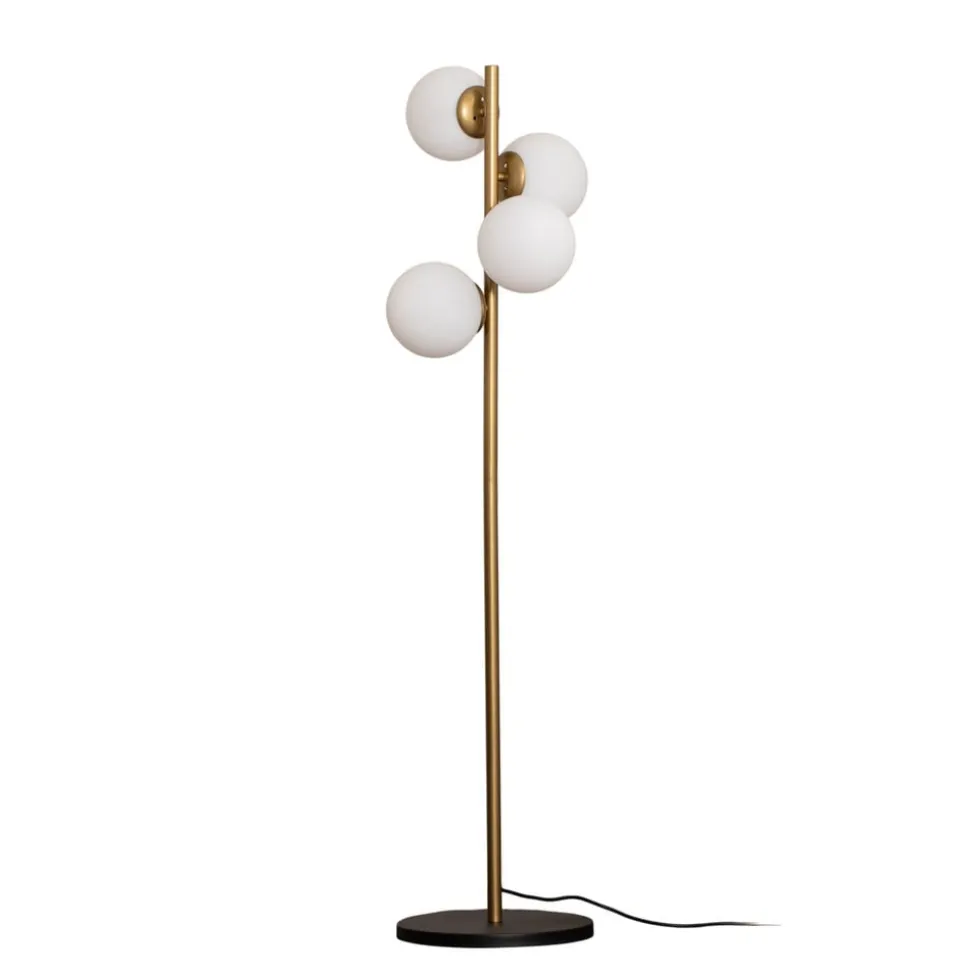 Gulvlampen i glas Faze kombinerer stilfuldt design med funktionel belysning og er det perfekte supplement til forskellige boligområder. Lampen er fremstillet af højkvalitetsglas og robust metal og tilbyder en harmonisk kombination af æstetik og holdbarhed. Med sine 4 lyskilder med E27-fatning sikrer den en jævn og behagelig lysfordeling, der skaber en hyggelig atmosfære i både stuen, spisestuen og soveværelset.