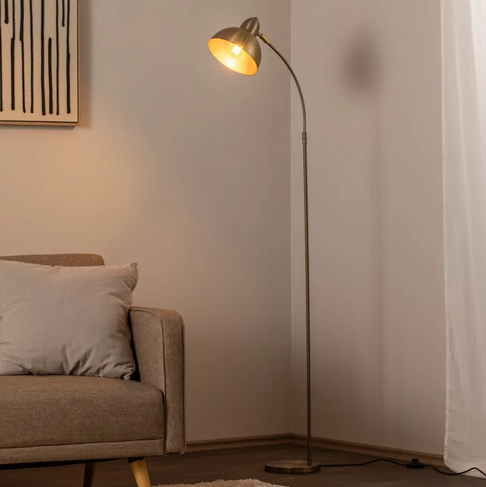 Gulvlampen Varzan forener tidløs elegance med funktionel alsidighed. Den er fremstillet af højkvalitetsmetal i en flot guldfarve og passer harmonisk ind i forskellige rumkoncepter. Uanset om den står i stuen, spisestuen eller soveværelset, giver den antikke guldlook ethvert rum et særligt præg og skaber en varm og indbydende atmosfære.