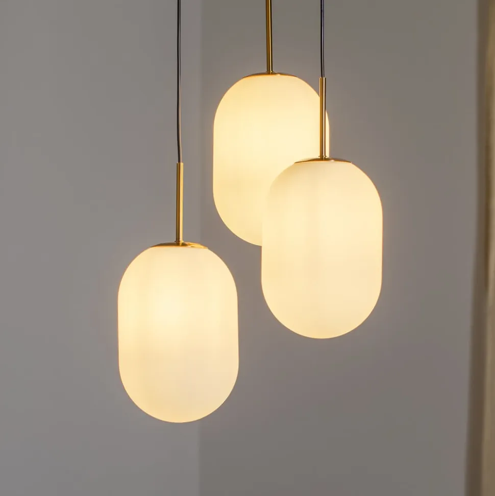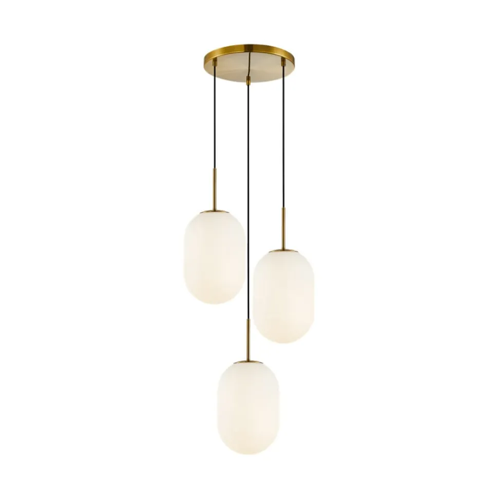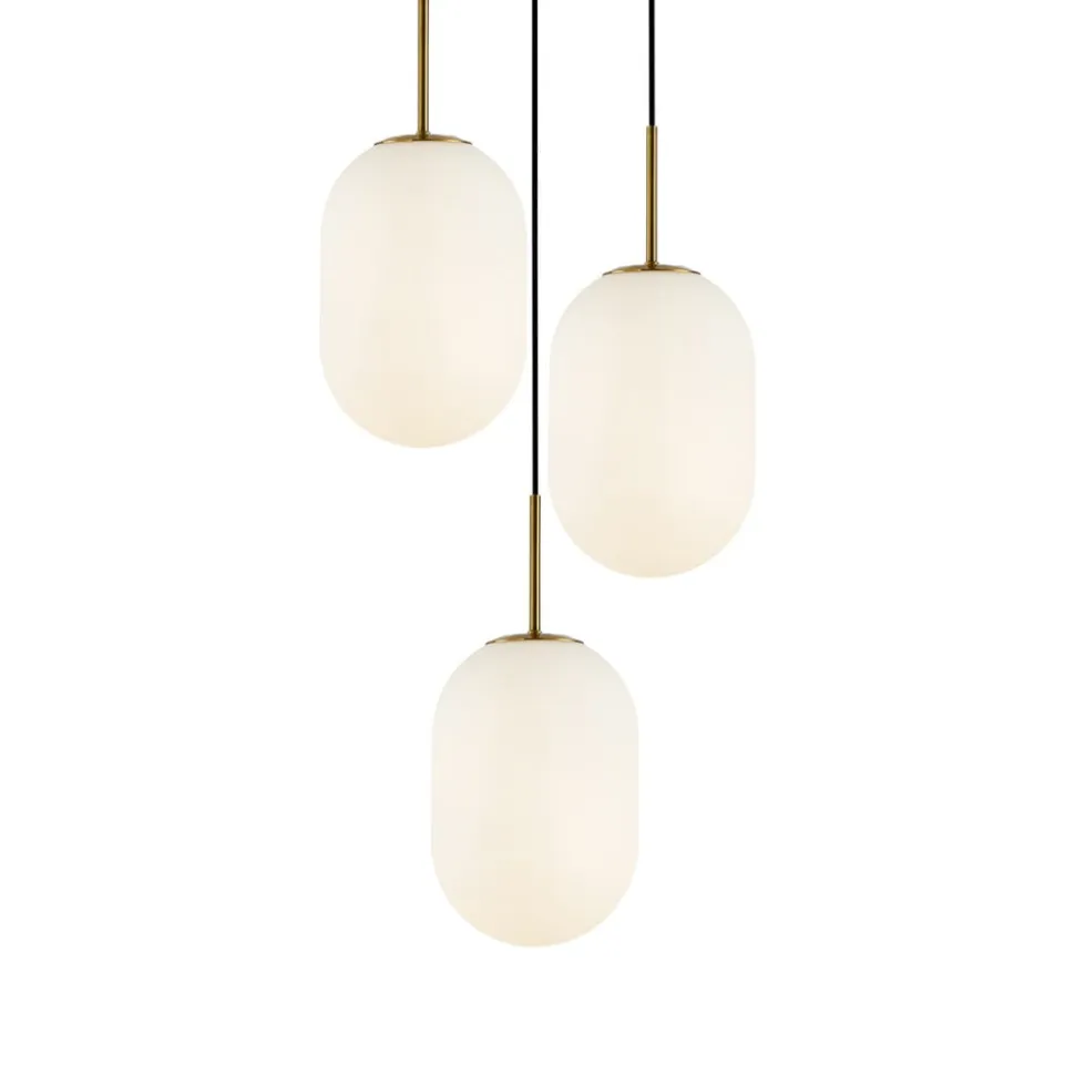 Hængelampen Alias kombinerer moderne design med materialer af høj kvalitet som glas og metal for at skabe en stilfuld atmosfære. Kombinationen af opal hvidt glas og guldfarvet metal giver lampen en tidløs elegance, der passer perfekt ind i forskellige rumkoncepter. Med sin runde form og 3 lyskilder sikrer hængelampen en jævn og behagelig belysning i stuer, spisestuer, soveværelser og køkkener.