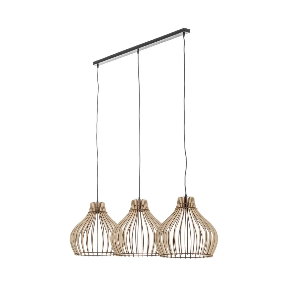 Hængelampen Barrel forener rustik landlig stil med moderne funktionalitet. Denne lampe er fremstillet af stål og træ i høj kvalitet og bringer naturlig charme ind i stuer, køkkener og spisestuer. De tre træskærme i lyst træ og sort finish giver ethvert rum en varm og indbydende atmosfære. Et særligt highlight er muligheden for at tilpasse lampen individuelt med en ekstern dæmper for at skabe den ønskede lysstemning.