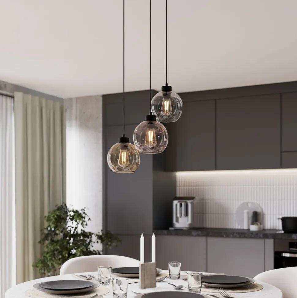 Hængelampen Cubus kombinerer moderne design med materialer af høj kvalitet som glas og metal for at skabe en stilfuld atmosfære i ethvert rum. Med sit klare og honningbrune farvespil sætter den accenter i stuen, køkkenet eller spisestuen. Lampen har 3 lyskilder og giver en imponerende lyseffekt, der er både funktionel og æstetisk tiltalende.