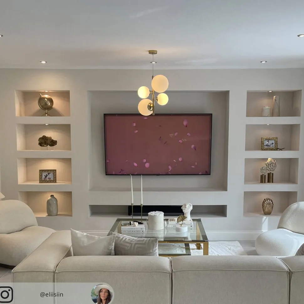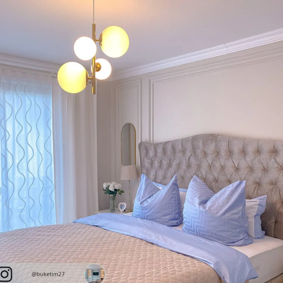 Hængelampen Dione, 4 lyskilder, guld, kombinerer moderne design med materialer af høj kvalitet som metal og glas. Kombinationen af hvidt frostet og gyldne elementer giver ethvert rum et luksuriøst præg. Denne lampe er ideel til stuer, køkkener og spisestuer og tilbyder en stilfuld belysningsløsning, der passer harmonisk ind i forskellige indretningsstilarter.