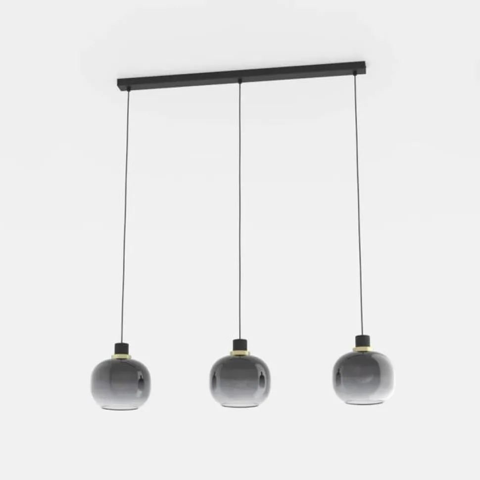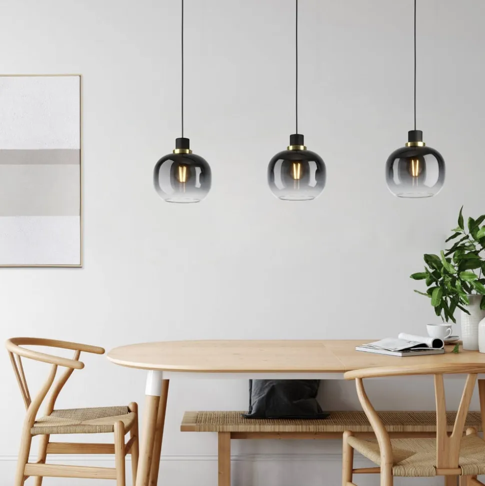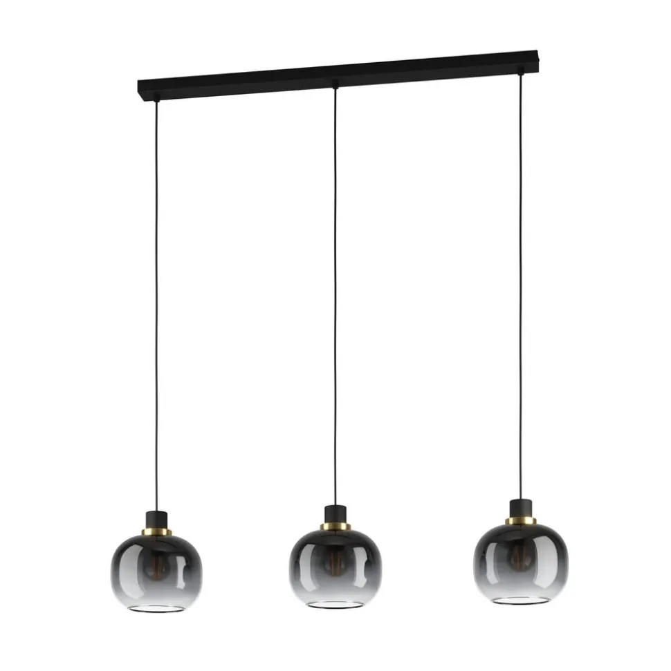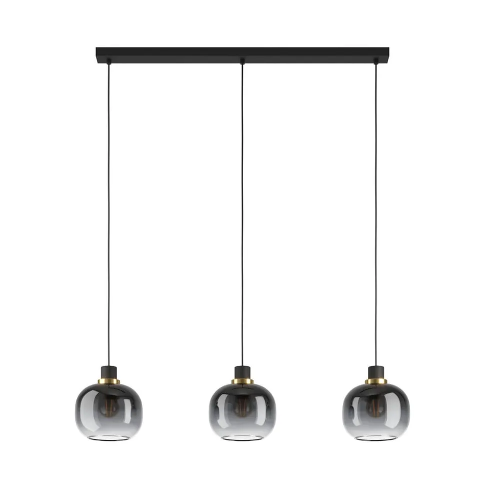 Hængelampe Oilella, sort-grå, længde 95 cm, glas, 3 lyskilder.