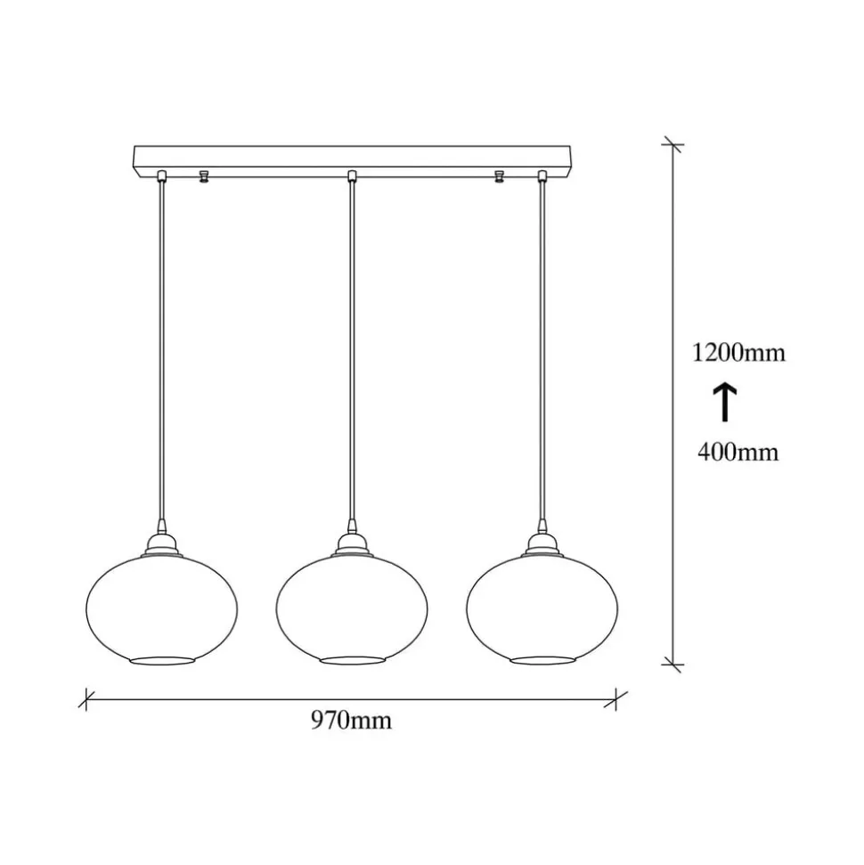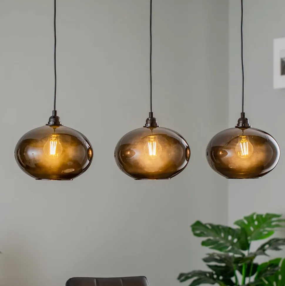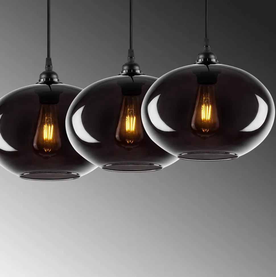 Hængelampe Smoked 052 3 lyskilder lineært glas Ø27cm