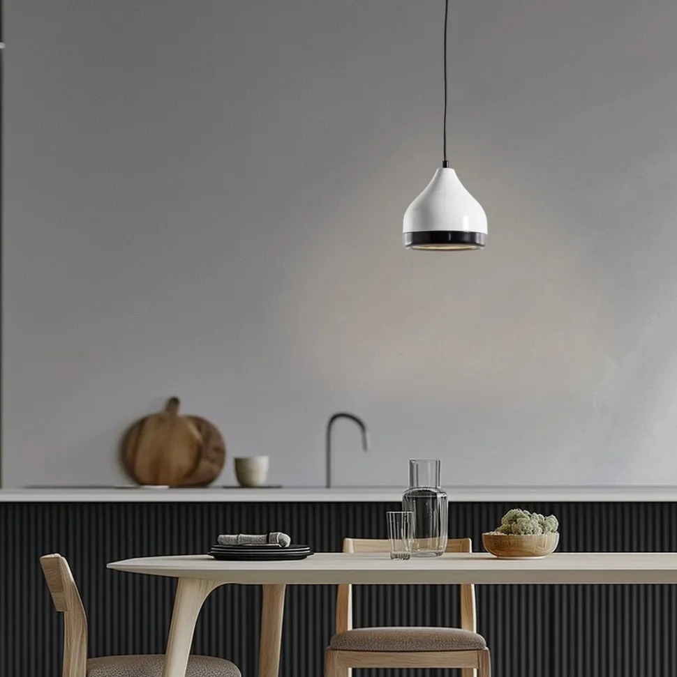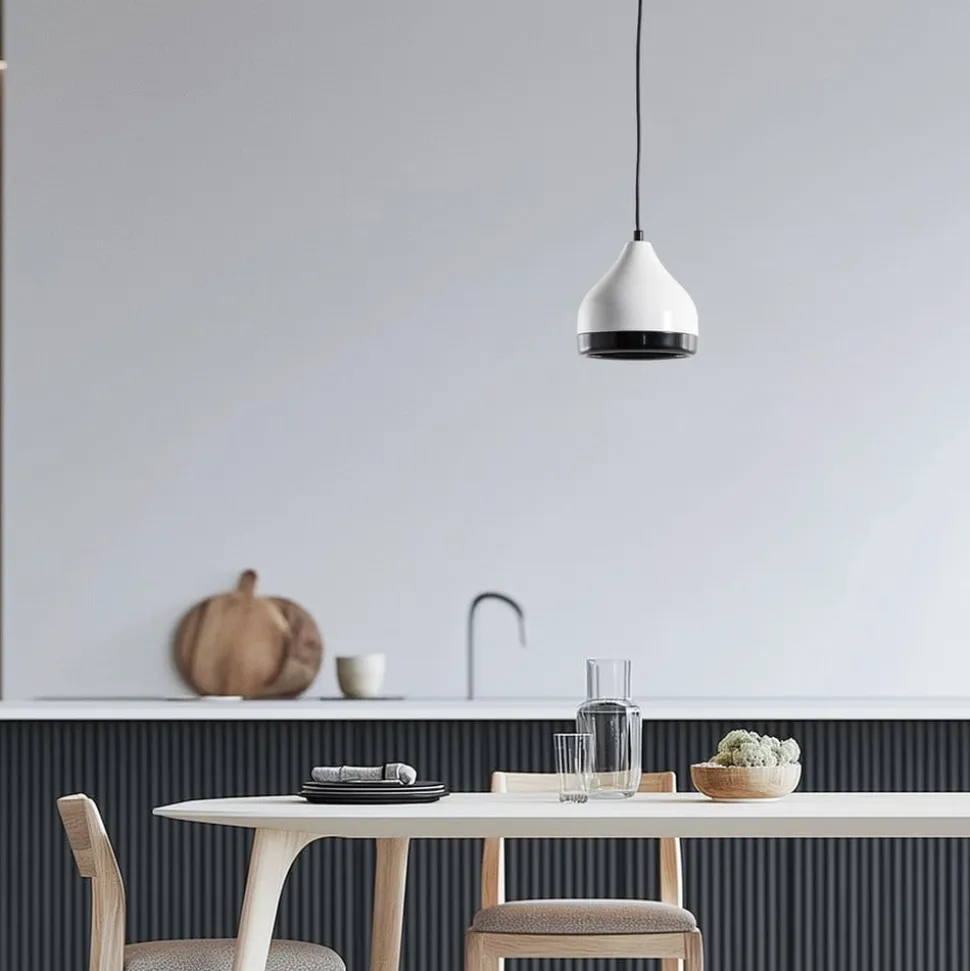 Hængelampen Yildo 6868 forener moderne design med høj kvalitet og er et fremragende eksempel på europæisk håndværk. Den er fremstillet af robust metal og fås i de stilfulde farver hvid og sort, så den passer perfekt ind i forskellige rumkoncepter. Uanset om den hænger i stuen, spisestuen eller køkkenet, sætter denne lampe prikken over i’et og skaber en behagelig atmosfære.