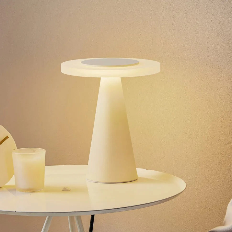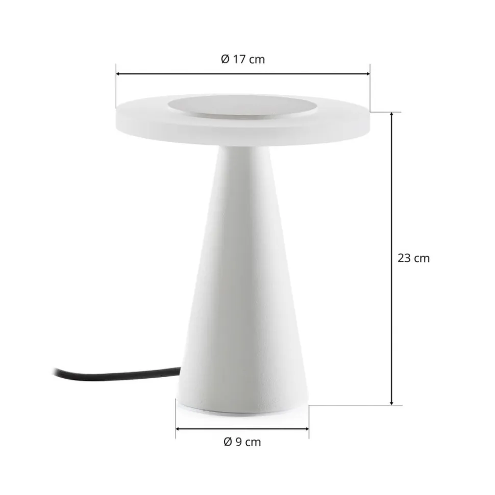 Bax LED-bordlampe i moderne design med touch-funktion Bax LED-bordlampen kan bruges overalt i den moderne bolig til at give et meget behageligt og effektivt ekstra lys; det futuristiske design gør Bax-bordlampen til et dekorativt objekt. Lampens koniske base bliver smallere mod toppen og er lavet af mat hvidlakeret metal. De varmhvide LED’er udsender et meget behageligt lys. Bax LED-bordlampen kan ikke kun tændes og slukkes ved hjælp af touch-funktionen i foden, men kan også dæmpes i tre trin. Den første berøring tænder lyset, og en anden berøring umiddelbart efter starter dæmpningsprocessen.