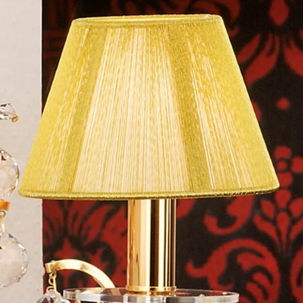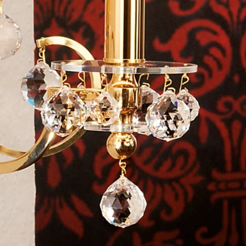En eksklusiv indretning udmærker sig ikke alene ved, at der lægges vægt på detaljerne. Med til disse detaljer hører uden tvivl væglampen Krystaldesign med kostbare Swarovski-krystaller, som funkler herligt i lampens lys. Af andre iøjnefaldende detaljer skal også tekstilskærmen i guldtråds-optik samt den 24-karat-forgyldte, elegant svungne vægholder fremhæves. Skærmens beskaffenhed bevirker et helt særligt behageligt lys. En væglampe, som ikke kun passer godt til stuen, men også i indgangsområdet virker meget indbydende og komplimenterer en elegant indretning på skøn vis.
