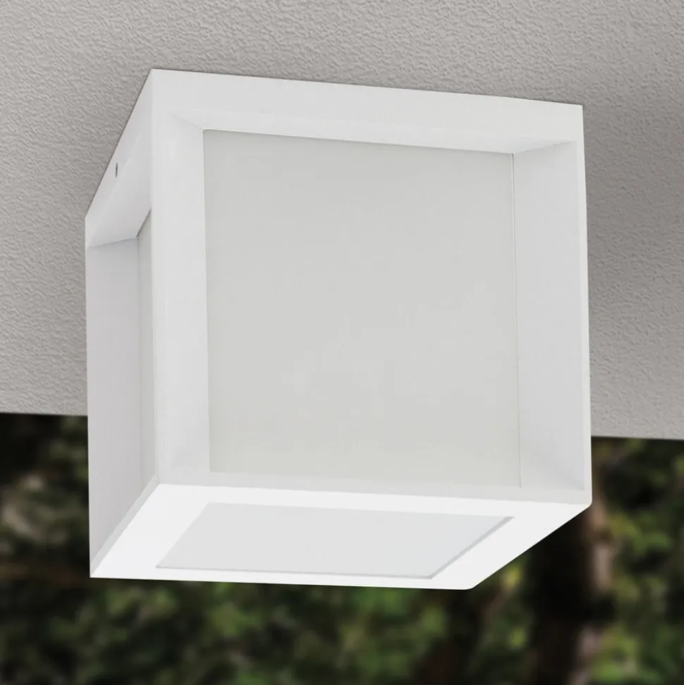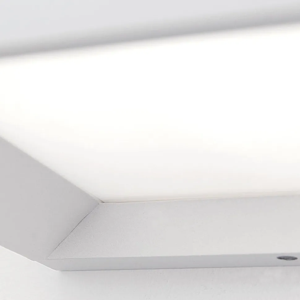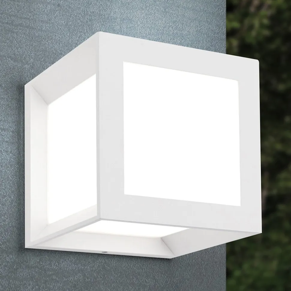 Terningformet udendørs væglampe Henry med lysfordeling til alle sider Denne udendørs væglampe kan bruges til at belyse f.eks. husets indgangsparti på en omfattende måde. Den kubeformede ramme af robust trykstøbt aluminium indeholder en opal PMMA-afskærmning, der udsender lyset fra den anvendte lampe blændfrit i alle retninger. Henry-væglampen med IP44-stænkbeskyttelse kan bruges overalt udendørs og kan også installeres som loftslampe. Lysstyrken kan justeres ved hjælp af en ekstern lysdæmper.