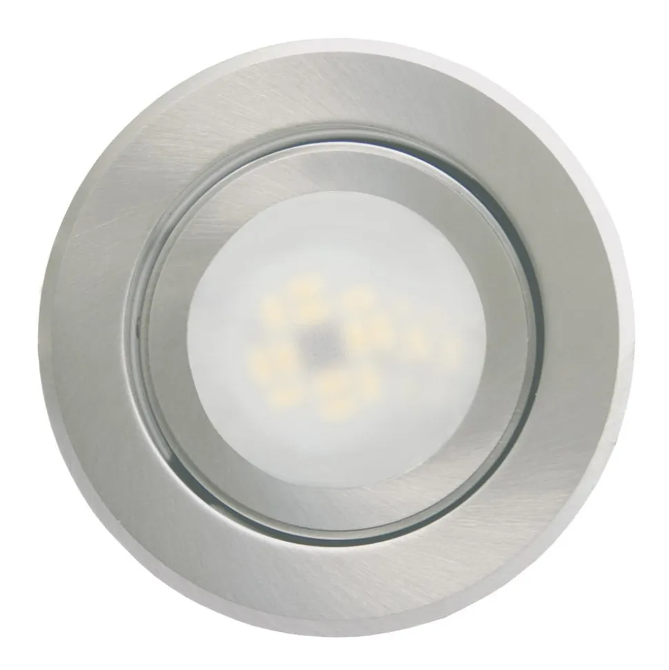 Funktionelt LED-indbygningsarmatur JoanieDet lille indbygningsarmatur Joanie er udstyret med en 4,5 Watt LED. Med en praktisk diameter på 8,2 cm og et drejeligt armaturhus er det nemt at installere og opnå en målrettet belysning. Forsyningsspændingen er 230 V. Det børstede aluminium giver spotlightet et moderne look. Takket være den nyeste LED-teknologi er denne lyskilde meget lysstærk, selv med et lavt wattforbrug. Den kan også dæmpes til individuelt lys. Lysets varme farvetemperatur skaber en hyggelig atmosfære.