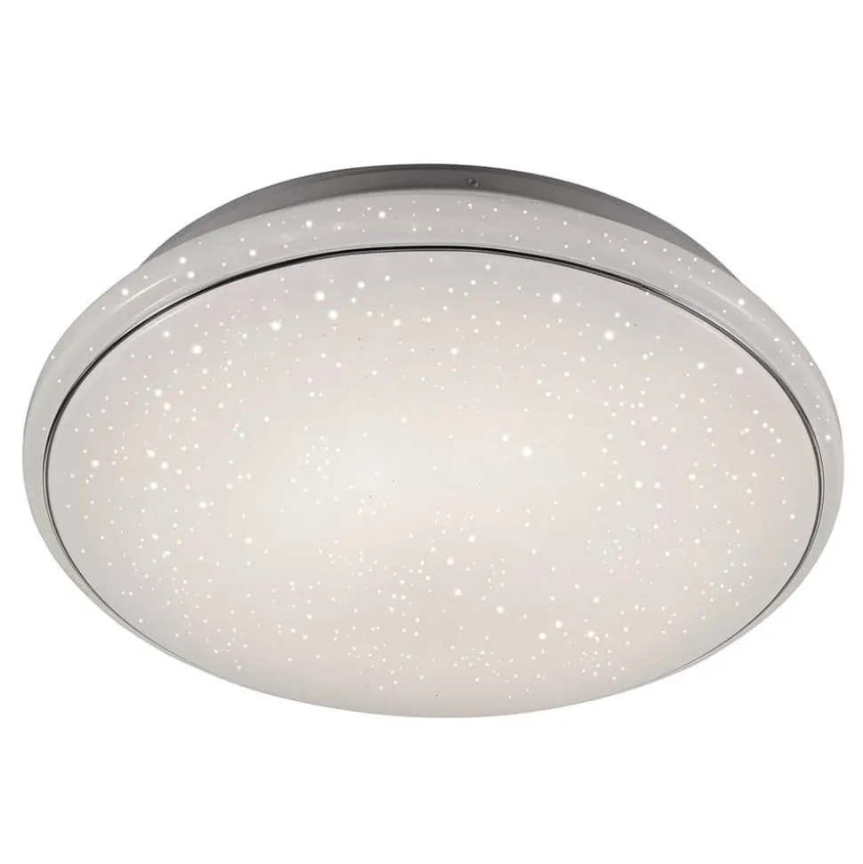 Denne store LED-loftlampe Jupiter, er fremstillet i materialerne stål og plast, og har en diameter på 60 cm. Den satinerede skærm er forarbejdet med en masse små, lysgennemtrængelige prikker, som lyset stråler uhindret igennem og dermed får hele skærmen til at virke som en enestående stjernehimmel. Et andet højdepunkt ved Jupiter LED-loftlampen er, at i modsætning til mange andre LED-lamper, behøver man ikke at vælge en lysfarve på forhånd. CCT-teknologien gør det muligt, at vælge mellem lysfarverne varmhvid (3.000 K), universal hvid (4.000 K) og dagslys (5.000 K), afhængigt af behovet – og dette ganske komfortabelt via den medfølgende fjernbetjening. Med denne kan man ikke kun vælge den ønskede lysfarve, men enhver af de valgte lysfarver kan desuden dæmpes trinløst.