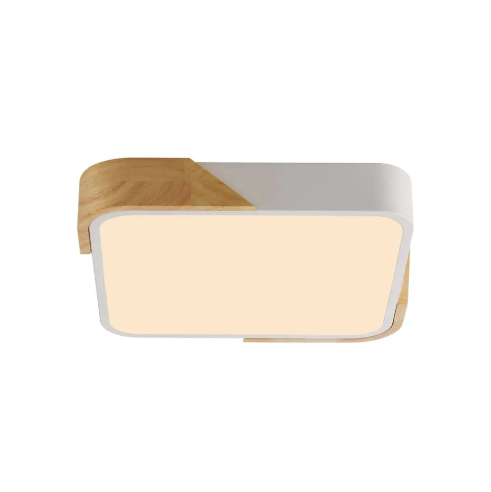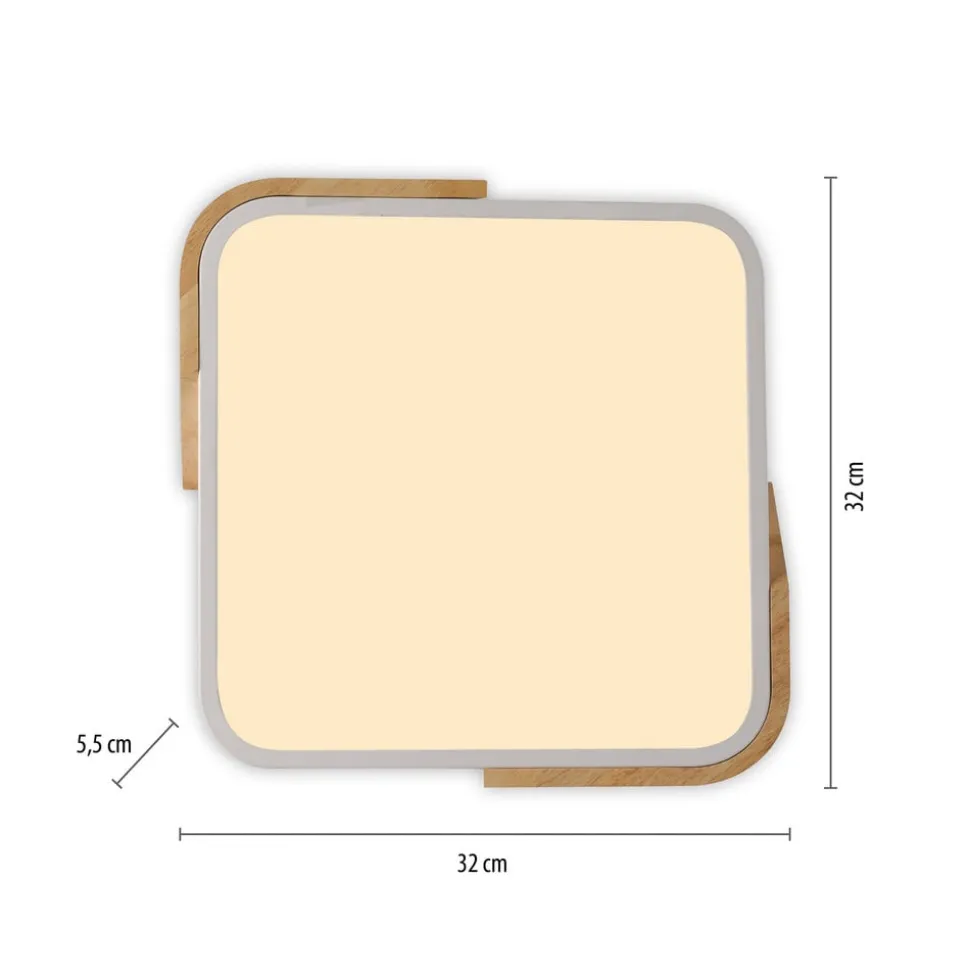 JUST LIGHT. Bila LED-loftslampe, hvid, 32×32 cm, træ