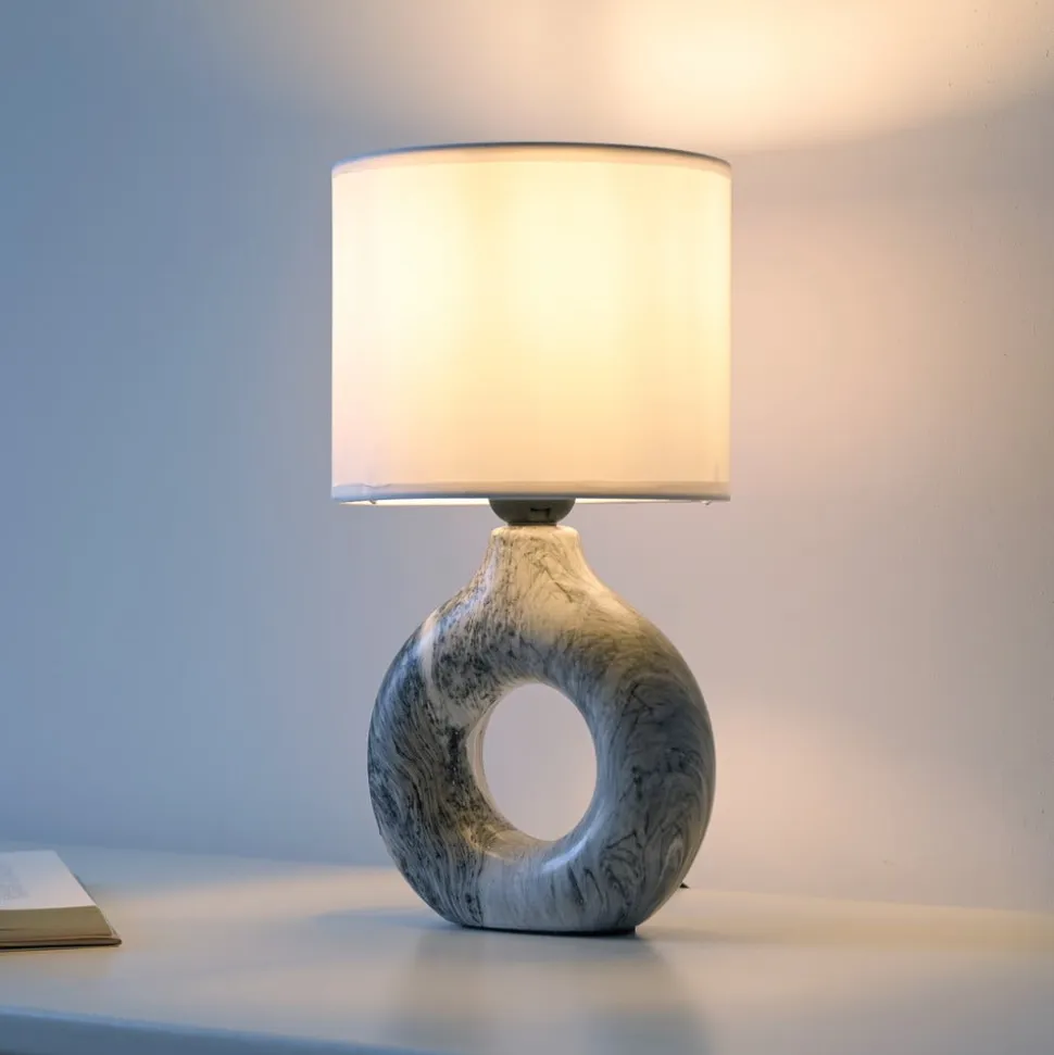 Carara bordlampe – keramikfod, tekstilskærm Carara er en bordlampe, der både kan bruges i stuen som en ekstra lyskilde på møbler eller sideborde og som natbordslampe. Kombinationen af en ringformet keramisk base og en cylindrisk skærm i stof giver den en særlig effekt og skaber en behagelig belysning. En pære efter eget valg (op til 25 W) kan sættes i E27-fatningen. Den betjenes ved hjælp af kontakten, der er integreret i kablet.