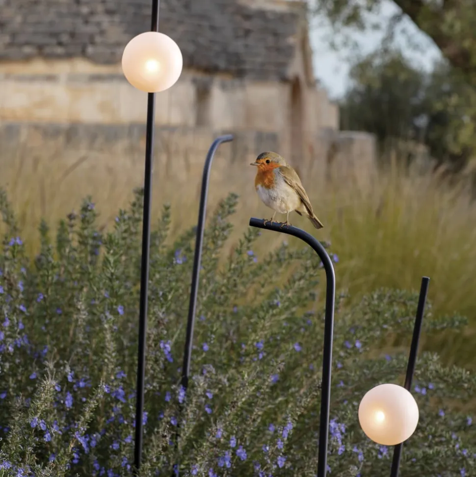 LED-spottelampen Pois har et yndefuldt og formfuldendt design fra designeren Matteo Ugolini og sikrer en stemningsfuld belysning i ethvert udendørs område. Den hvide lampeskærm af fin kunstharpiks minder i sin optik og sit organiske design om en blomst, der troner på en yndefuld stilk, eller, når mørket falder på, om en ildflue på opdagelsesrejse.