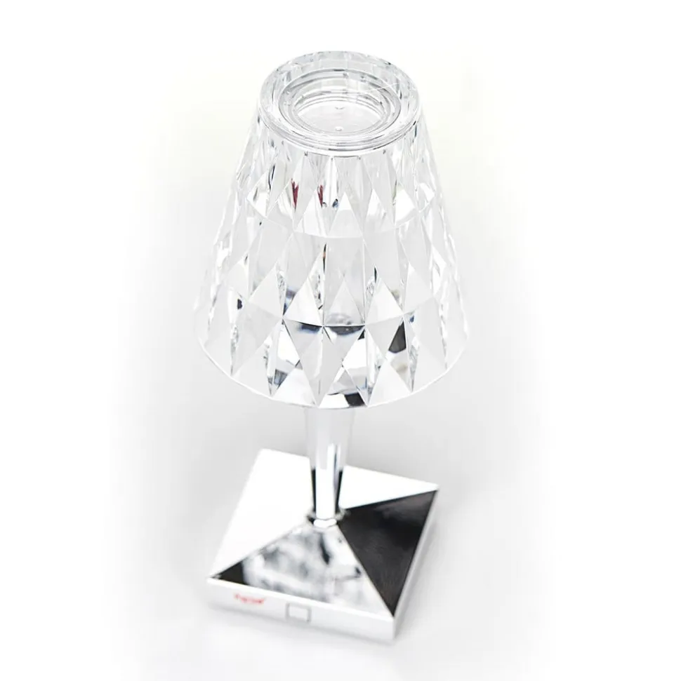 Med genopladeligt batteri: Dekorativ batteridrevet bordlampe til udendørs brug Den lille Battery LED-bordlampe er et dekorativt og praktisk tilbehør til udendørs brug. Til dette formål er den udstyret med kapslingsgrad IP54 og er derfor beskyttet mod forskellige vejrpåvirkninger. Takket være det genopladelige batteri kan bordlampen placeres hvor som helst, f.eks. på terrassen, altanen eller endda i kontraktsektoren, hvor bordlampen er et stilfuldt dekorativt element i udendørsarealer på caféer og restauranter. Det genopladelige batteri oplades via en USB-forbindelse og har en maksimal lysvarighed på 6 timer. Den gennemsigtige skærm skaber et fortryllende lysspil i de umiddelbare omgivelser takket være sin facetterede overflade. Den Milano-baserede virksomhed Kartell er kendt for sine innovationer inden for plast. I mere end 60 år har anerkendte designere udviklet hverdagsgenstande, møbler og lamper i plast for Kartell. I løbet af årtierne har Kartell ikke kun modtaget forskellige priser for dette, men har også opbygget sit eget museum for at bevare virksomhedens materielle og immaterielle arv.