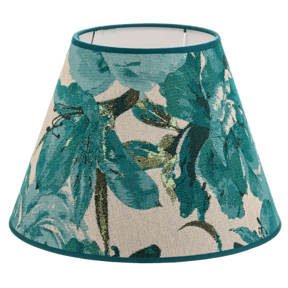 Sofia lampeskærmen kombinerer stilfuldt design med høj kvalitet og bringer et strejf af elegance til ethvert rum. Den er fremstillet af fint tekstilmateriale og charmerer med et flot blomstermønster i en levende turkis farve. Denne kombination af materiale og farve sikrer en harmonisk lysfordeling og skaber en behagelig atmosfære, der både kan virke beroligende og inspirerende.