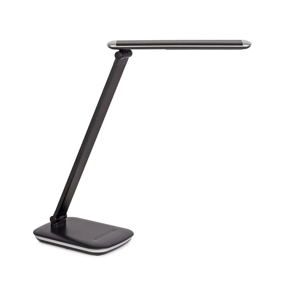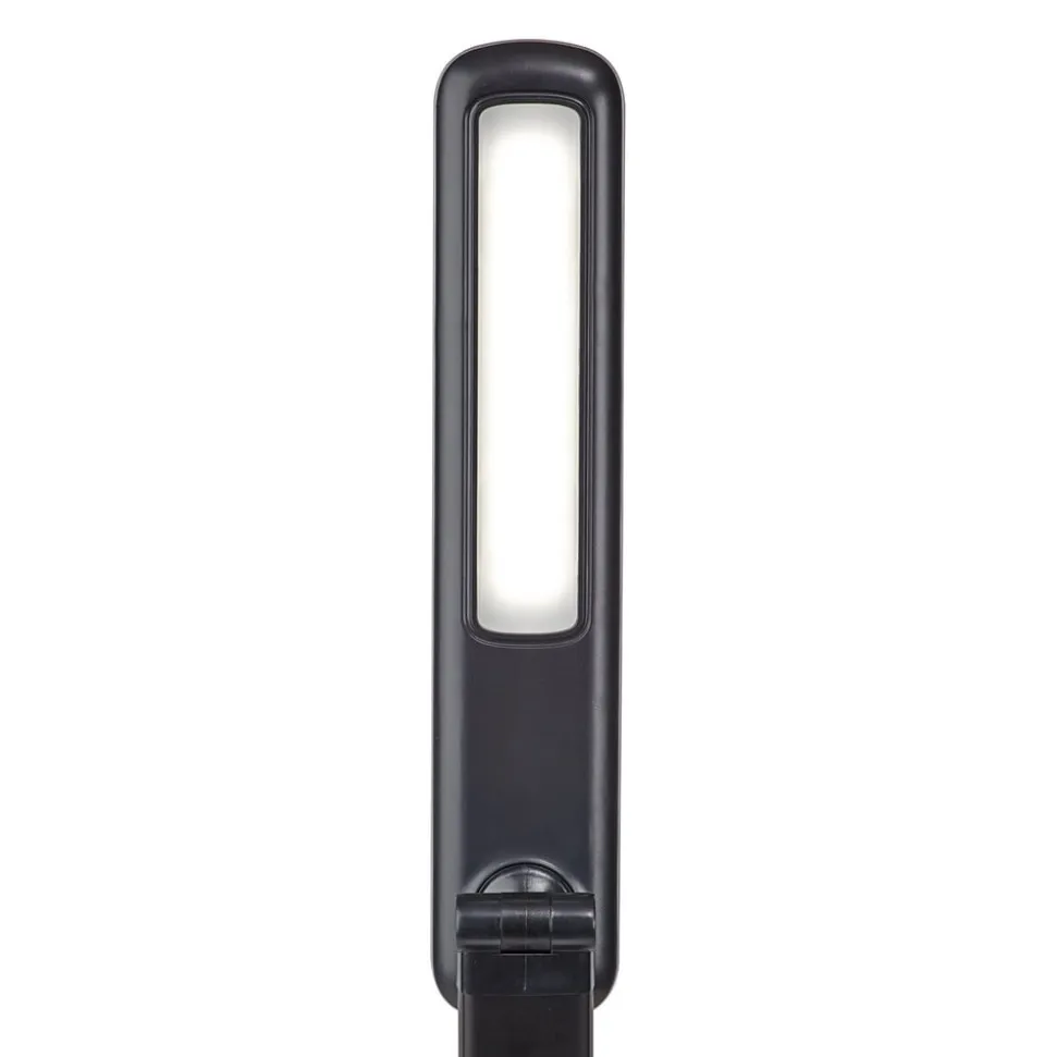 Dæmpbar LED-skrivebordslampe MAULjazzy – USB-opladningsport medfølger Med denne LED-skrivebordslampe, som kan dæmpes i fem niveauer, kan lysstyrken altid tilpasses dit humør og dine behov. Lysets retning kan også justeres efter behov takket være det drejelige og vipbare hoved og den vipbare arm. Skrivebordslampen imponerer også med sit økonomiske energiforbrug. Den indbyggede vægtindsats i foden sikrer, at MAULjazzy altid står sikkert, mens en skrivebordsvenlig pude på foden forhindrer ridser i bordpladen. Integreret afbryder på basen – Udstyret med diffuser (lavt skyggekast) – Kompakt lampe med høj lysliste – Praktisk betjening via touchpanel på basen med visning af lysstyrke – USB-opladningsport på basen til smartphones osv,
