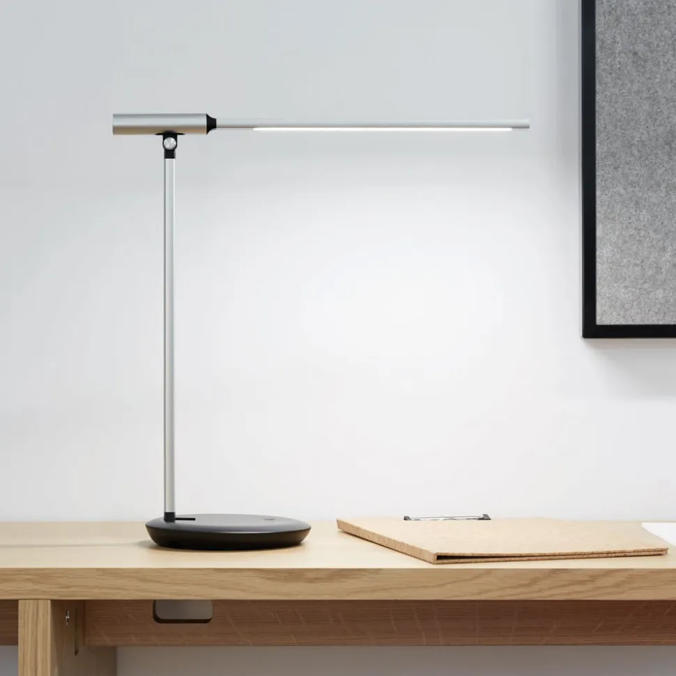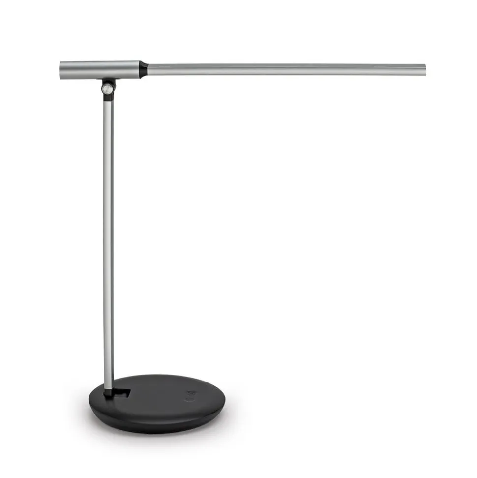 Dæmpbar MAULrubia LED-bordlampe med CCT-funktion MAULrubia-bordlampen er særligt velegnet som skrivebordslampe takket være dens høje kvalitet og attraktive design. Belysningsstyrken kan dæmpes i fire trin, og lysfarven kan justeres trinløst fra varmhvid til dagslys. Lampen har en integreret USB-port til opladning af tekniske enheder som f.eks. smartphones. Lampearmen kan vippes 85°. Lampehovedet kan også drejes og vippes 180°, hvilket giver mulighed for fleksibelt arbejde – Belysningsstyrke: 1520 lux ved en afstand på 35 cm