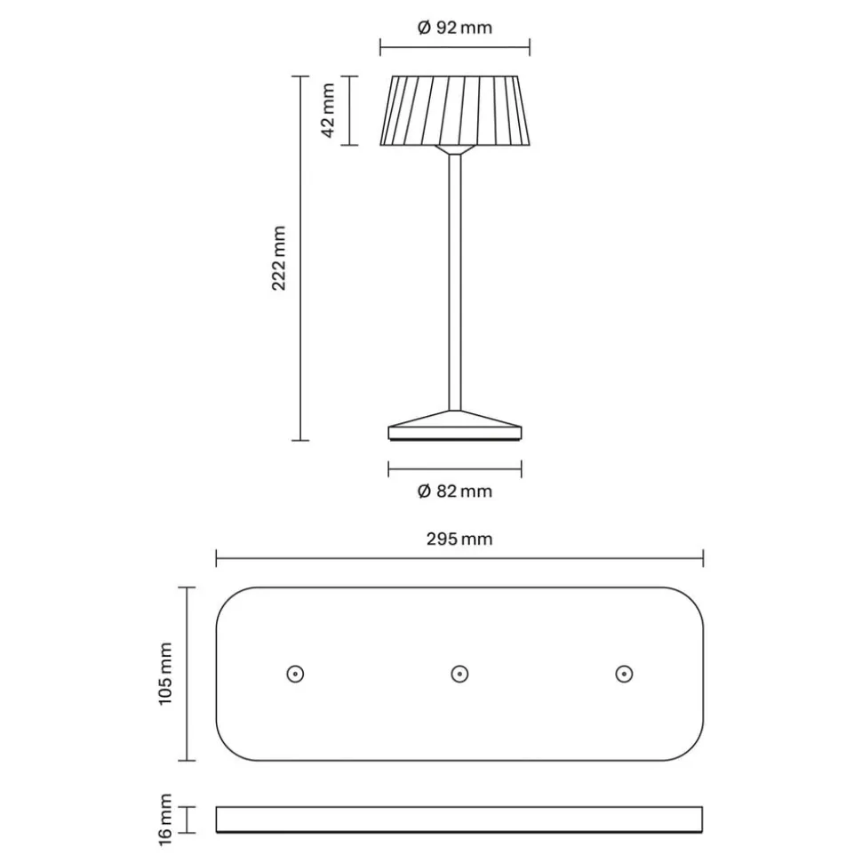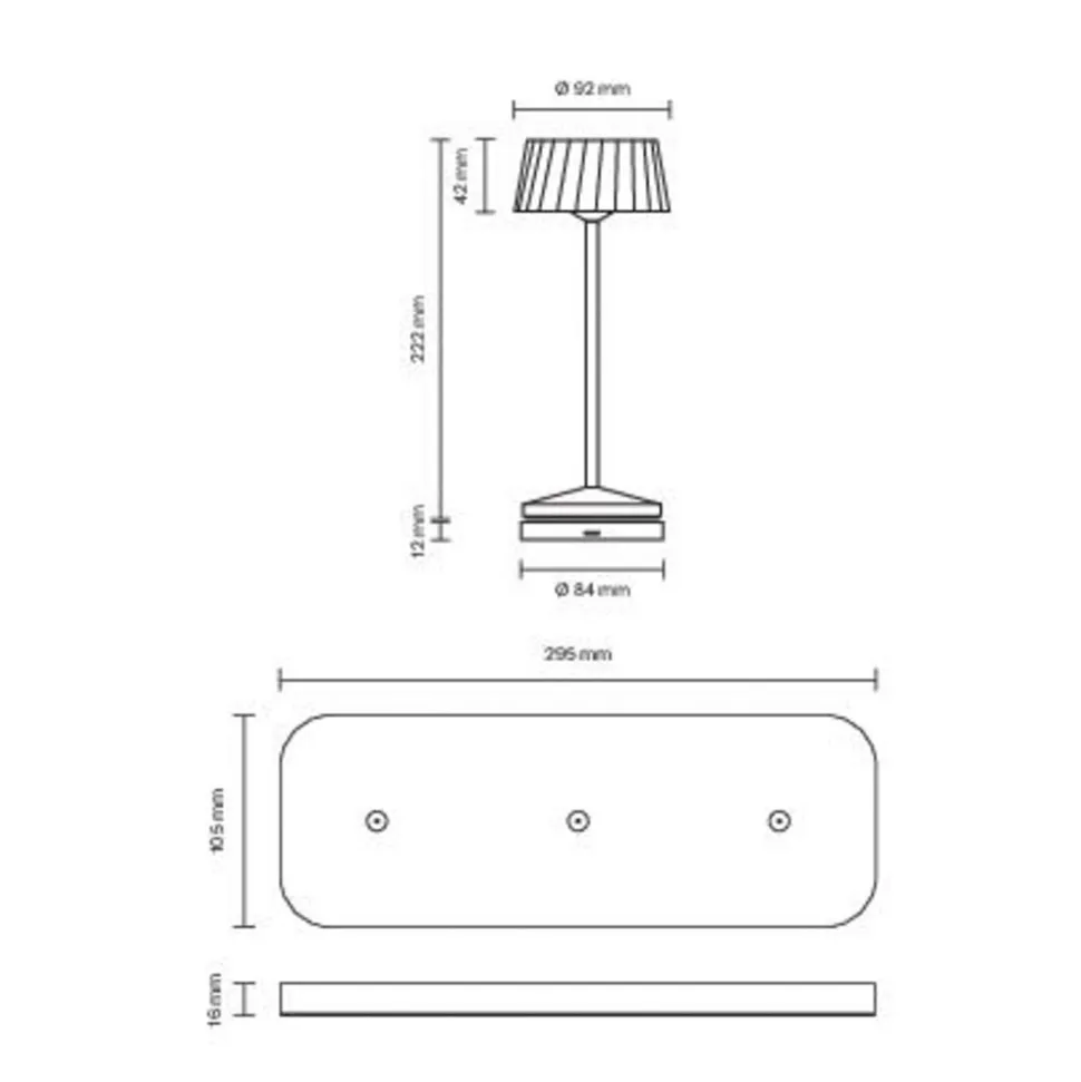 – Inkluderet opladestation til samtidig opladning af tre lamper i tørt indendørs miljø