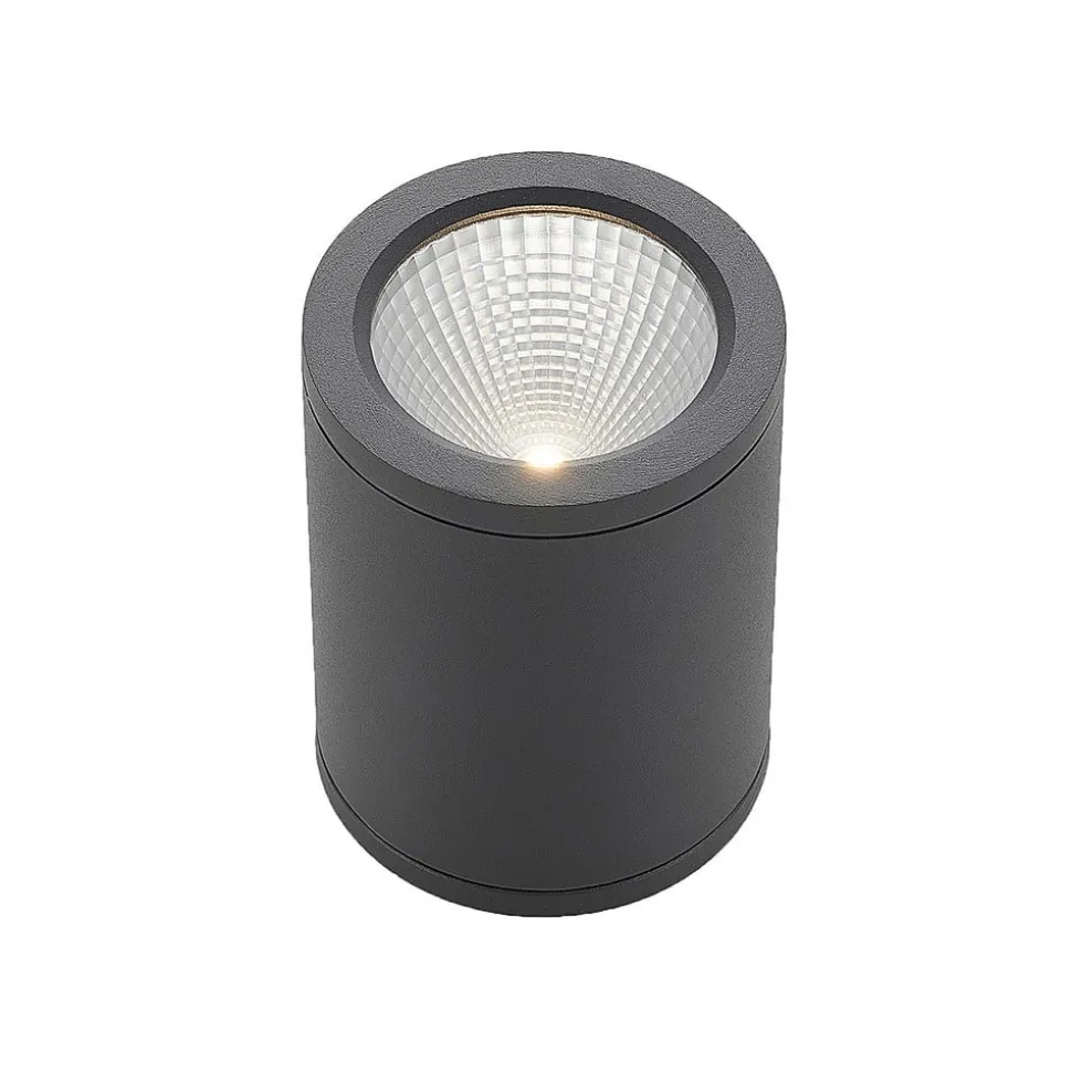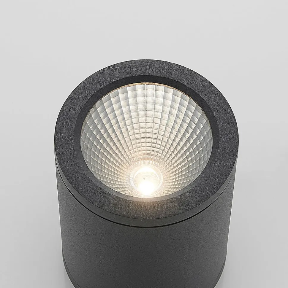 Mørkegråt LED-downlight Embla i cylindrisk form – ideelt til overdækkede områder på udendørsarealerne