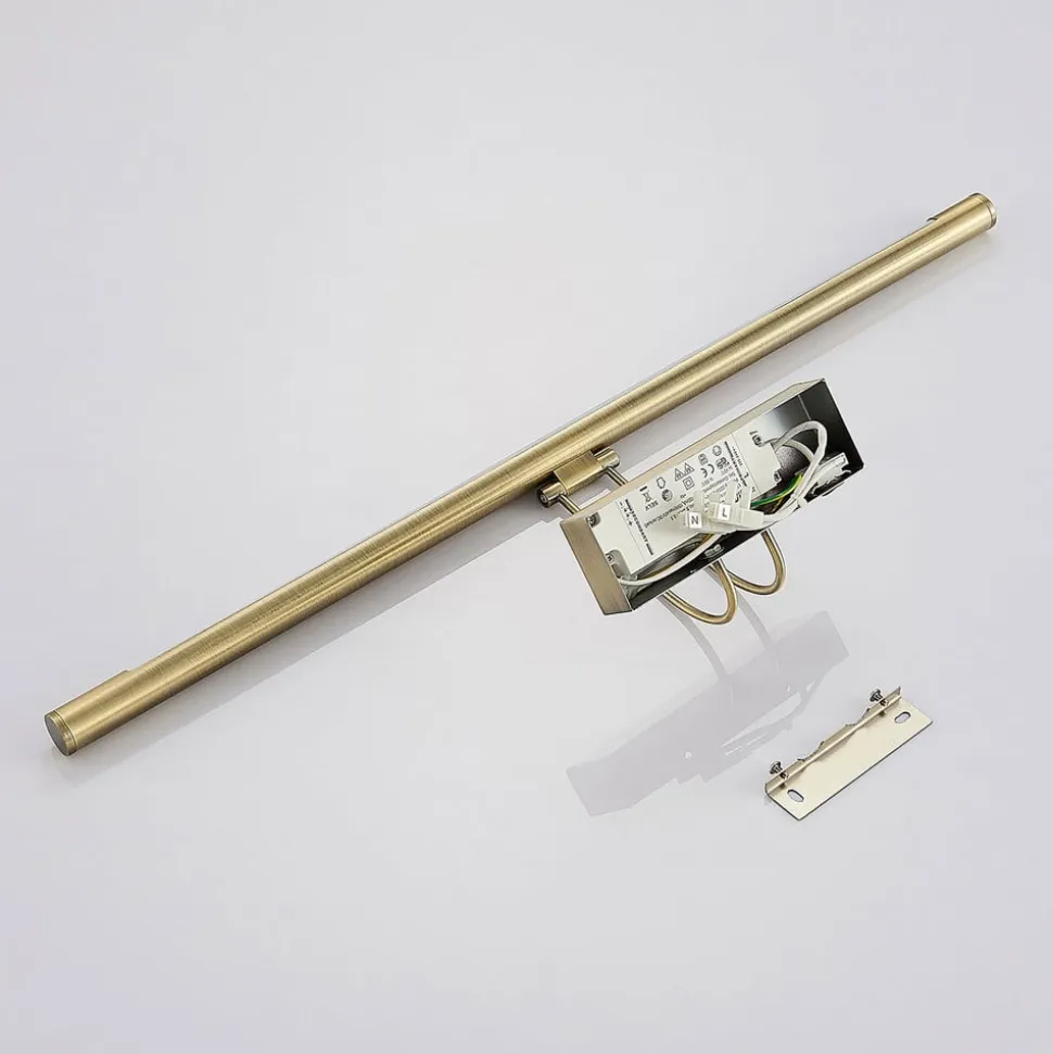 Mailine passer med sin patinerede messingfinish rigtigt godt til klassiske boligstile og også stellets buede form fungerer overbevisende med en klassisk udstråling. Lyset skinner nedad, så man med gallerilampen fint kan iscenesætte billeder af enhver slags, hvad enten det er et fotografi, en tegning, et maleri eller et kunsttryk fra ens yndlingskunstner. For at give mere komfort ved betjeningen befinder der sig på vægholderen, der lige som resten af lampen er farvet i patineret messing, en praktisk vippeafbryder.