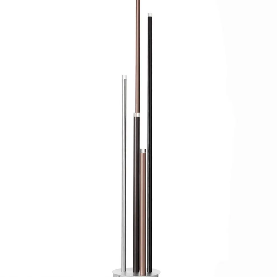 Meget moderne og med et stilfuldt design fremstår LED-gulvlampen Cembalo. Med sit varmhvide lys og de naturlige farver i finishen skaber den en behagelig og varm atmosfære. Der er placeret fem metalsøjler på en rund stander, og de krones af en akryldiffusor, der indeholder en LED-pære. På grund af søjlernes forskellige højder skabes der en enestående oplysning, der giver harmoniske accentueringer i soveværelser og stuer.