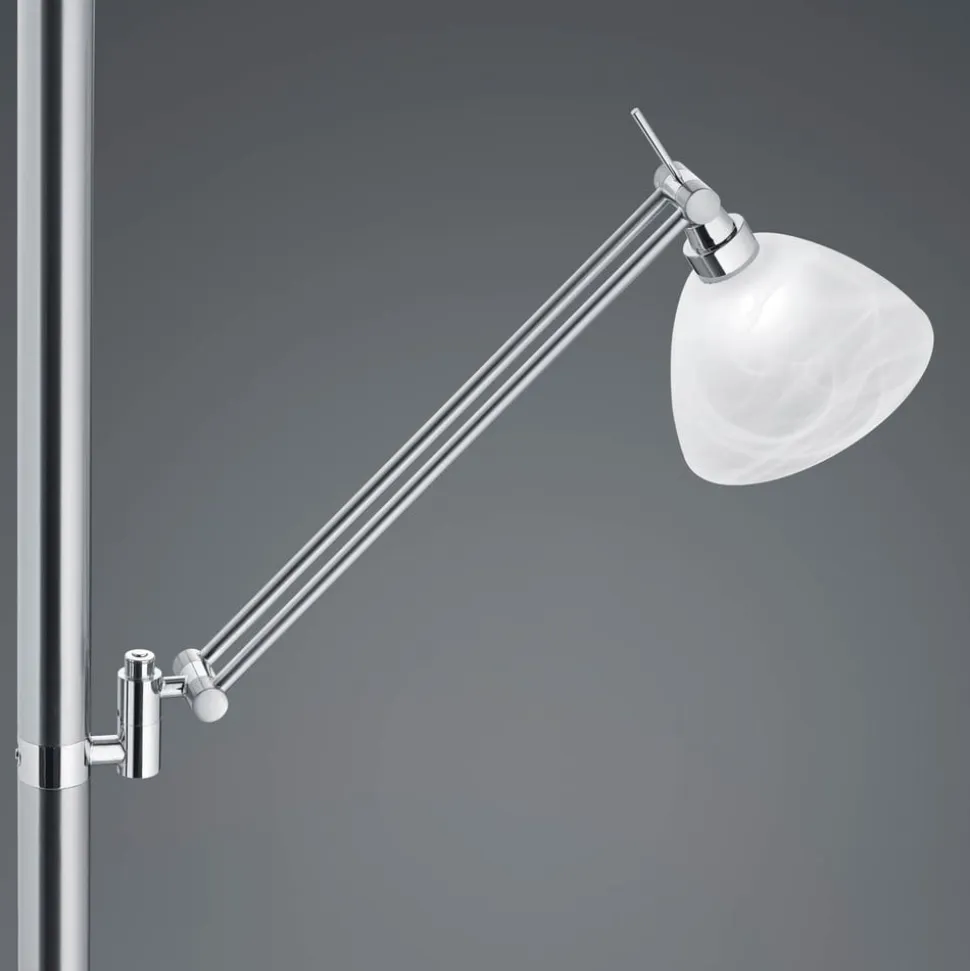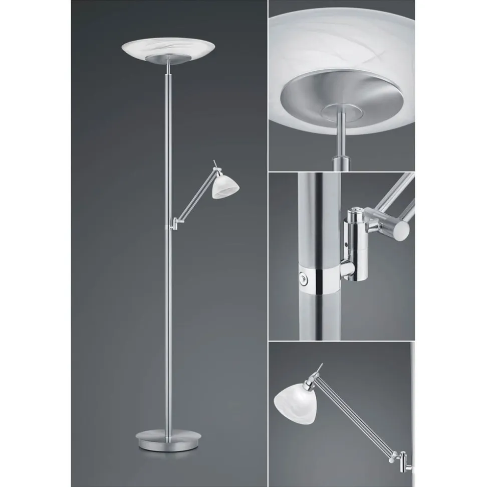 LED-gulvlampe Findus med projektørlys, læselys og integreret dæmpningsfunktion Findus er en gulvlampe, der overbeviser med sit klassiske og enkle design og passer til næsten enhver boligstil. Den lige metalramme med en rund base ender i et rundt floodlight-element, hvorfra der skinner et behageligt lys. Med sit varme og indirekte lys skaber LED-loftvaskeren en atmosfære af hygge og komfort. Den ekstra påmonterede læsearm i mellemste rammehøjde kan bevæges fleksibelt og muliggør dermed et målrettet lys, der kan bruges til læsning for at skåne øjnene under læsning. Begge lyskilder er udstyret med LED’er og kan bruges sammen eller uafhængigt af hinanden. Ved hjælp af en integreret lysdæmper kan lysstyrken ændres trinløst og meget nemt for at tilpasse den til den pågældende situation.