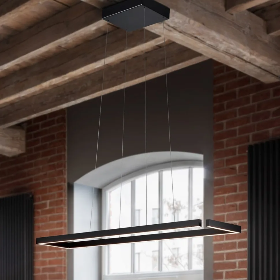 Dette LED-pendelarmatur kan altid opfylde individuelle belysningskrav. Den markante, rektangulære form udstråler elegance og er perfekt suppleret af praktiske funktioner. Den kantede profil er udstyret med lysdioder i toppen og bunden i hele dens længde. Dette skaber både et toplys og et bundlys, så der er direkte belysning nedad og indirekte belysning opad, som blidt oplyser rummet. De to lyskilder kan skiftes separat fra hinanden takket være den dobbelte indbyggede gestuskontrol. Desuden kan lysets lysstyrke reguleres, og lysets farve kan indstilles i det varmhvide farvespektrum.
