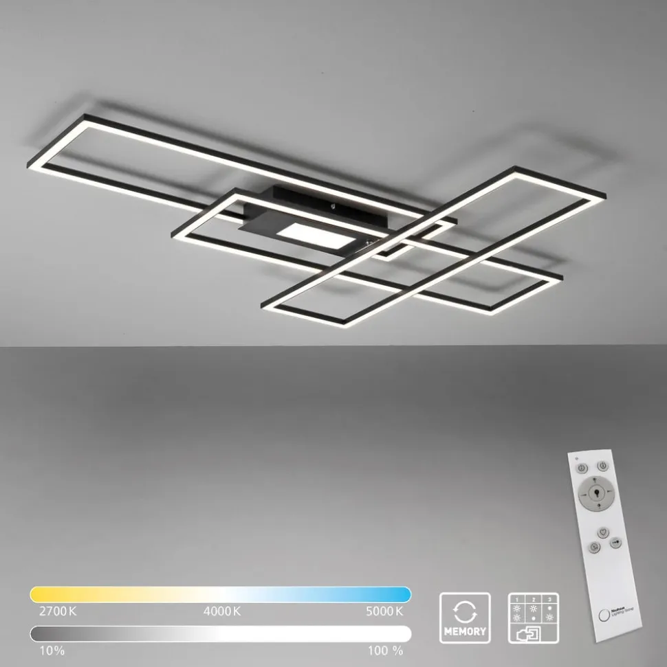 Inklusive fjernbetjening – sort LED-loftlampe Asmin med tre rektangler, dæmpbar