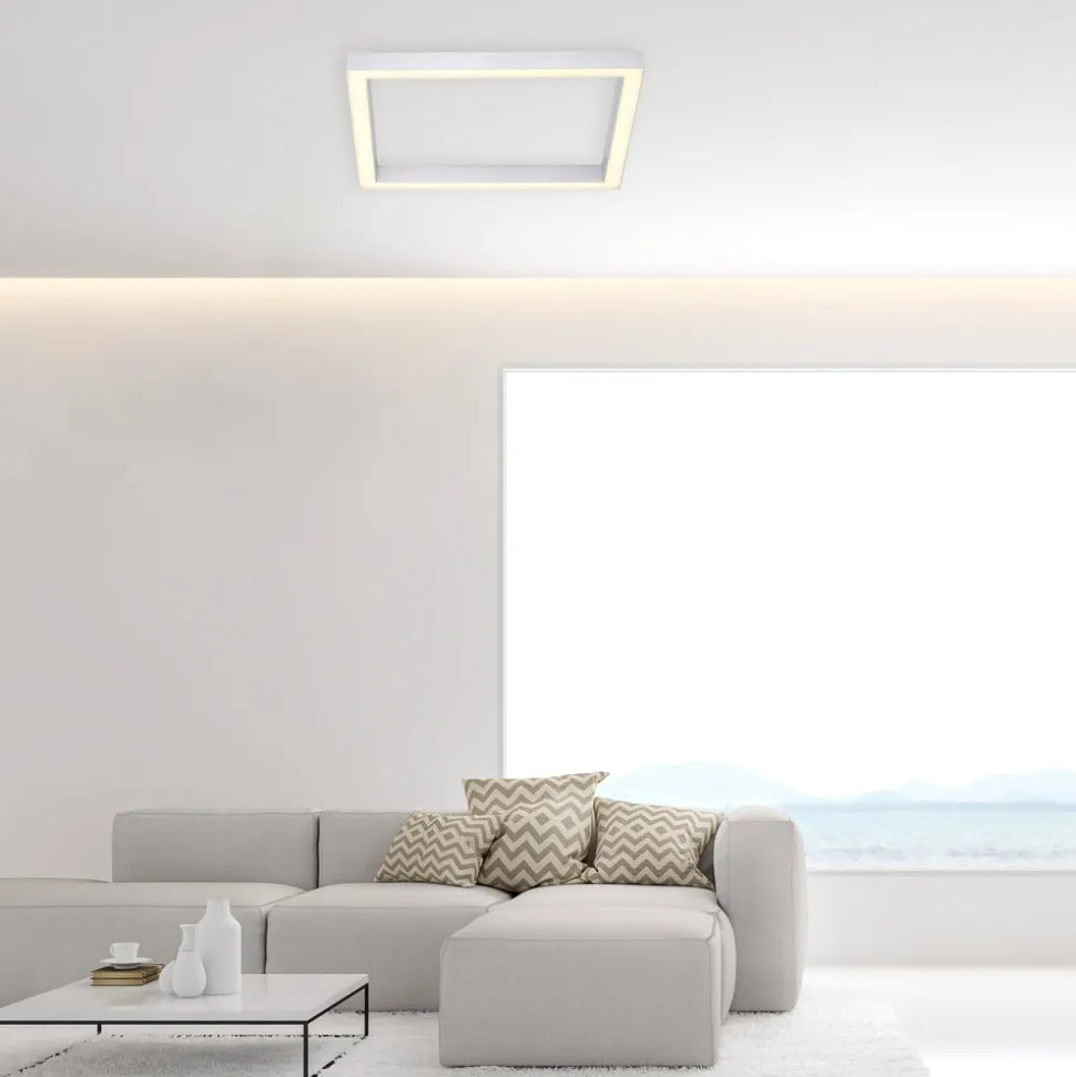 LED-loftlampe PURE Lines, 55 x 55 cm, sølv, CCT, fjernbetjening
