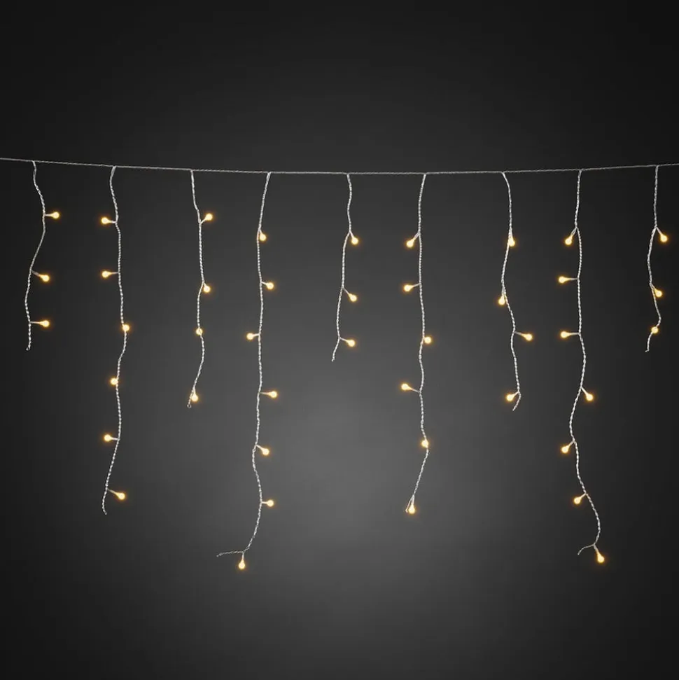 Ravfarvet LED-lysgardin Ice rain LED-lysgardinet Ice rain med 200 lys skaber en meget hyggelig lysstemning udendørs, uanset om det f.eks. er monteret på ydersiden af et vindue eller langs kanten af et tag. LED-lysgardinet Ice Rain er udstyret med et gennemsigtigt kabel, som næsten ikke ses i løbet af dagen, når belysningen er slukket – Udendørs transformer medfølger