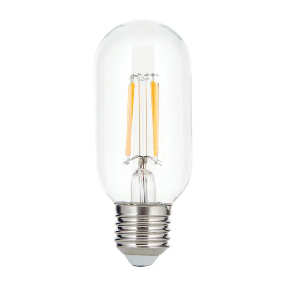 Klar LED-glødelampe E27 8W i rørform med varm hvid lysfarve, dæmpbar