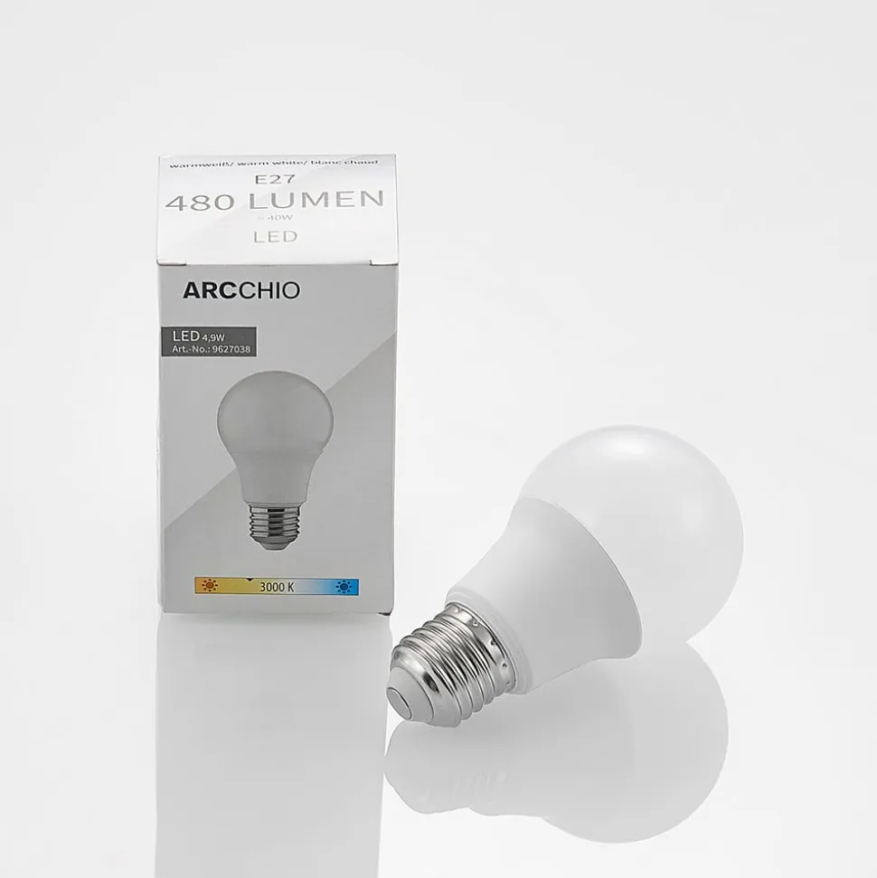 LED-lampe E27 A60 4,9W med opal dæksel og varm hvid lysfarve i et praktisk sæt med 6A Som erstatning for en 40 W halogenlampe kan denne LED-lampe E27 anvendes på mange forskellige områder. Lampen af polycarbonat er robust og udsender varmt hvidt lys. – ikke dæmpbar – Leveres i et praktisk sæt med 6 lamper